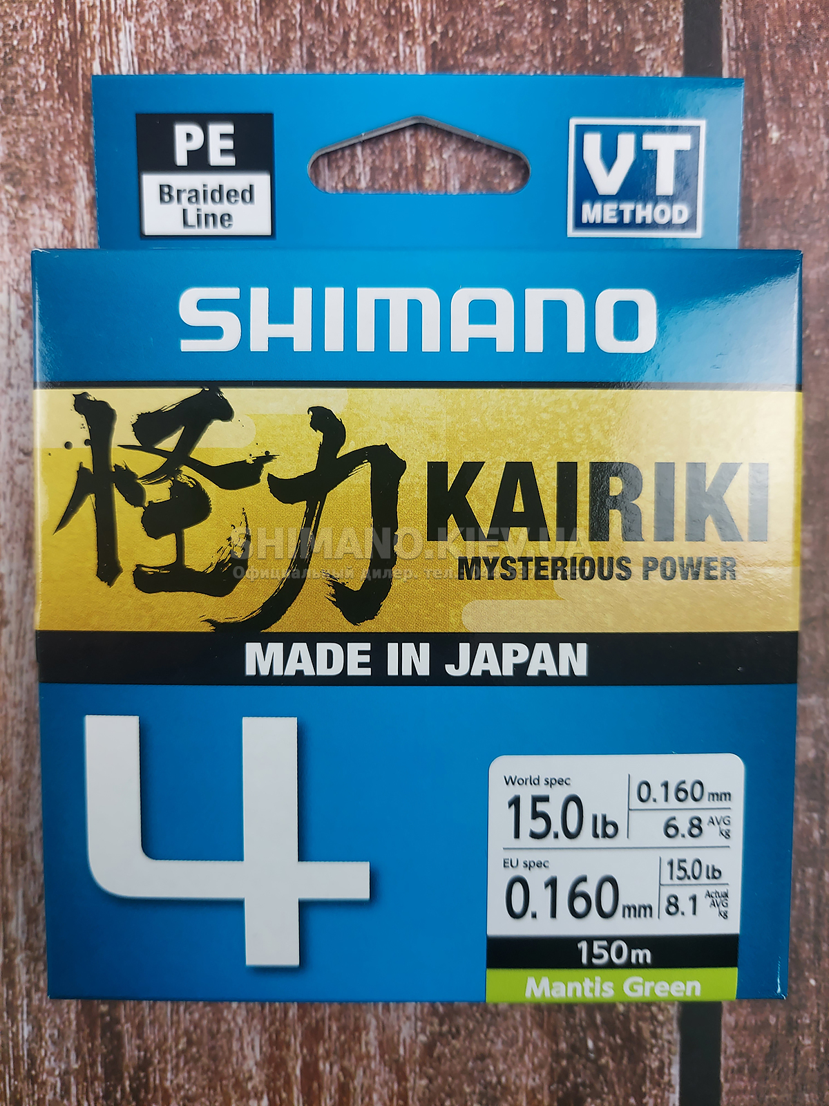 Шнур Shimano Kairiki 4 PE (Mantis Green) 150m 0.16mm 8.1kg