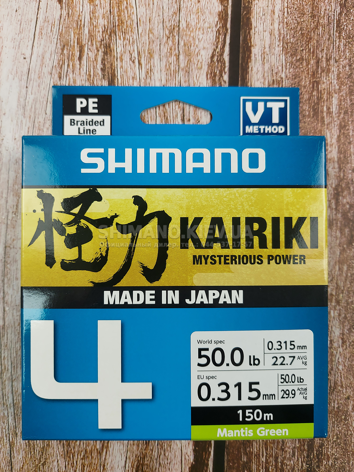 Шнур Shimano Kairiki 4 PE (Mantis Green) 150m 0.315mm 29.9kg