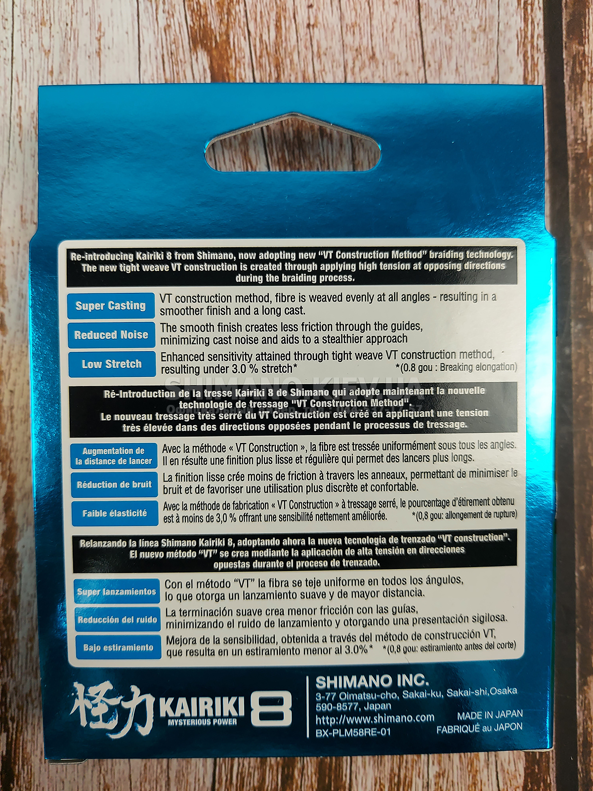 Нова конструкція VT із щільним переплетенням, що має 8 несучих елементів і чудове японське виробництво, створюється шляхом застосування високої напруги в протилежних напрямках під час процесу плетіння. У способі побудови VT волокно сплітається рівномірно під усіма кутами, що призводить до більш гладкої поверхні, зменшеного діаметру та збільшення дальності закидання. Крім того, гладка поверхня створює менше тертя через напрямні, зводить до мінімуму шум і забезпечує підвищену чутливість, що призводить до низького розтягування. Kairiki 8 - це, нарешті, дуже хороше обплетення для джиггінгу, тому що воно має низьку водостійкість та еластичність менше 3%.