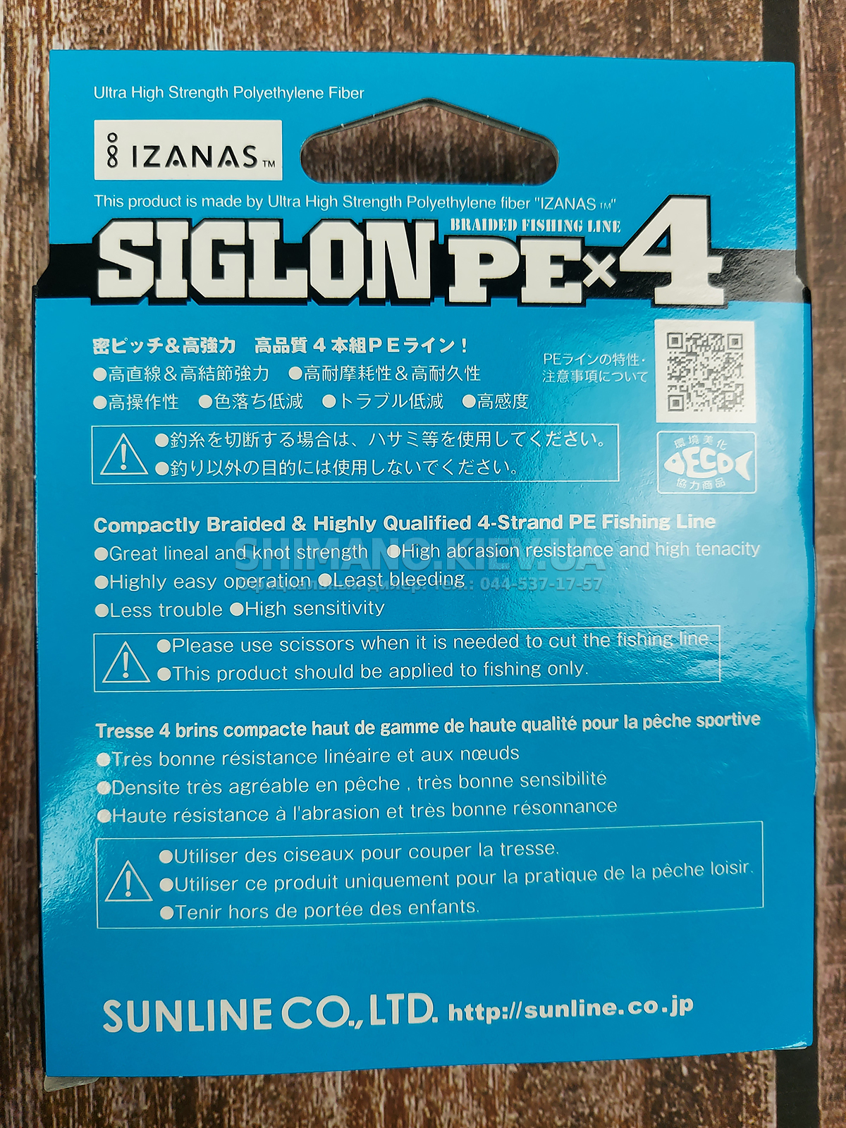 Представлена модель шнурів від японських розробників буквально увірвалася на світовий ринок риболовних снастей. У процесі розробки були використані сучасні нитки під назвою Excellent PE, завдяки яким модель Sunline Siglon PE x4 відрізняється наявністю спеціального круглого перерізу. Серед незаперечних технічних особливостей просто неможливо не відзначити величезний запас міцності, а також підвищений рівень зносостійкості до різних ушкоджень і деформацій.