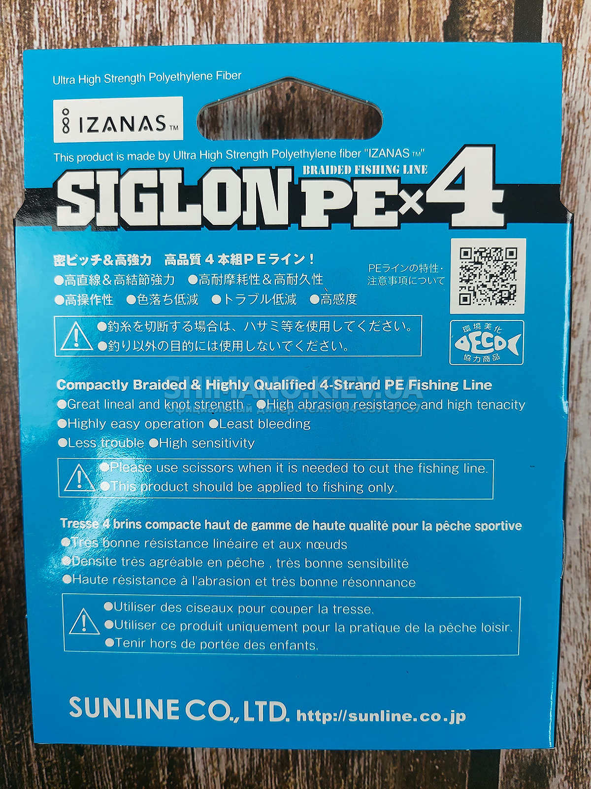 Представлена модель шнурів від японських розробників буквально увірвалася на світовий ринок риболовних снастей. У процесі розробки були використані сучасні нитки під назвою Excellent PE, завдяки яким модель Sunline Siglon PE x4 відрізняється наявністю спеціального круглого перерізу. Серед незаперечних технічних особливостей просто неможливо не відзначити величезний запас міцності, а також підвищений рівень зносостійкості до різних ушкоджень і деформацій.