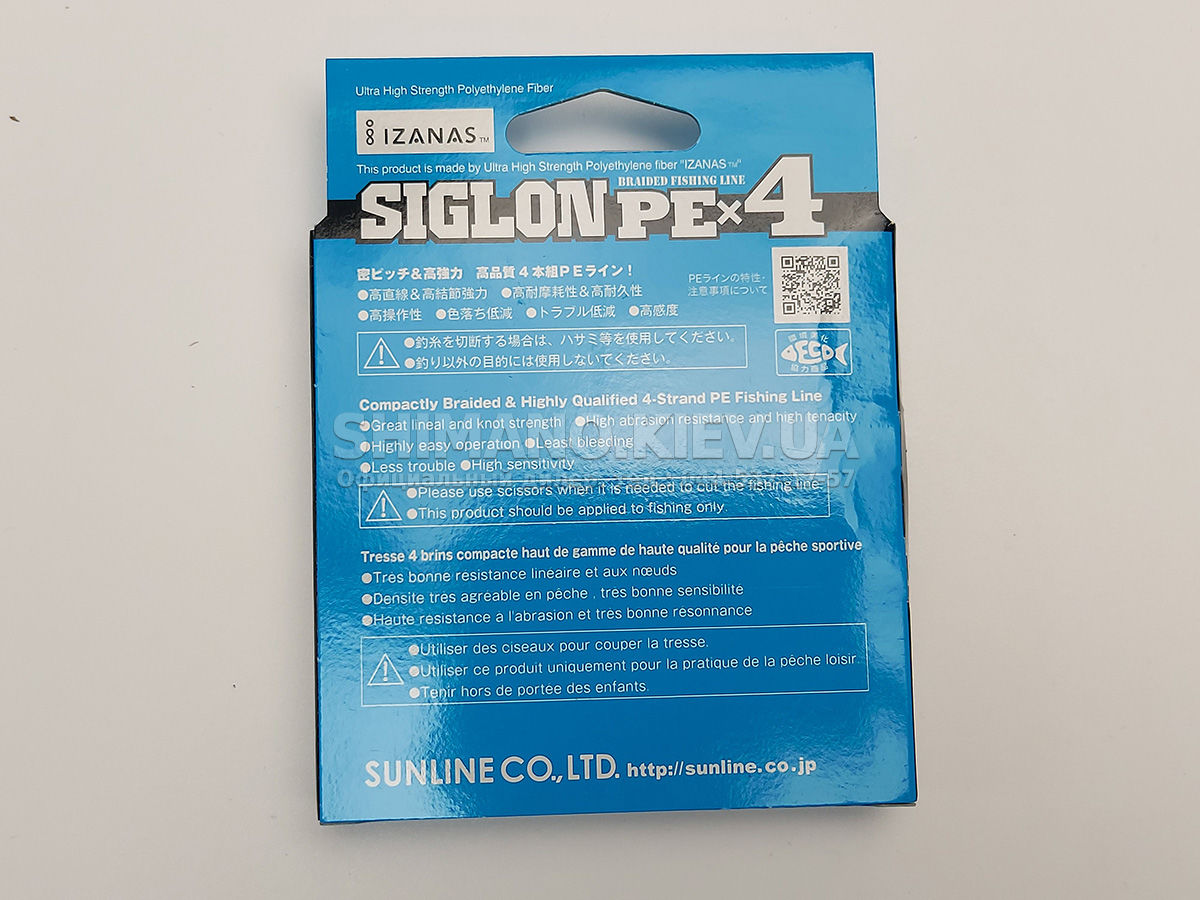 Представлена модель шнурів від японських розробників буквально увірвалася на світовий ринок риболовних снастей. У процесі розробки були використані сучасні нитки під назвою Excellent PE, завдяки яким модель Sunline Siglon PE x4 відрізняється наявністю спеціального круглого перерізу. Серед незаперечних технічних особливостей просто неможливо не відзначити величезний запас міцності, а також підвищений рівень зносостійкості до різних ушкоджень і деформацій.