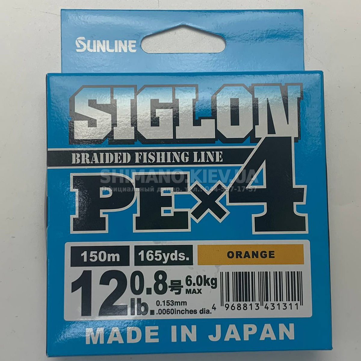 Шнур Sunline Siglon PE х4 150m (помаранч.) #0.8/0.153mm 12lb/6.0kg