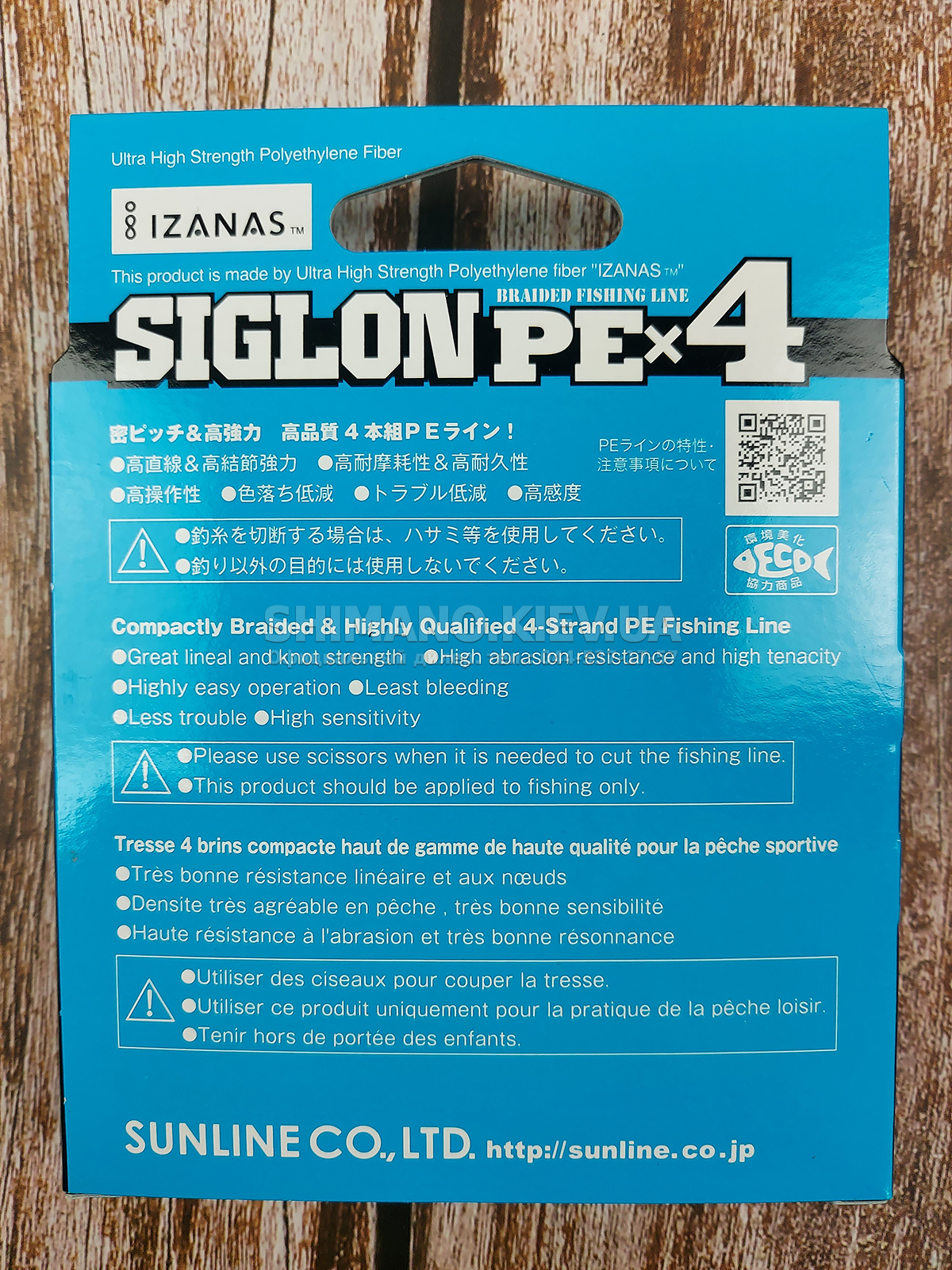 Представлена модель шнурів від японських розробників буквально увірвалася на світовий ринок риболовних снастей. У процесі розробки були використані сучасні нитки під назвою Excellent PE, завдяки яким модель Sunline Siglon PE x4 відрізняється наявністю спеціального круглого перерізу. Серед незаперечних технічних особливостей просто неможливо не відзначити величезний запас міцності, а також підвищений рівень зносостійкості до різних ушкоджень і деформацій.