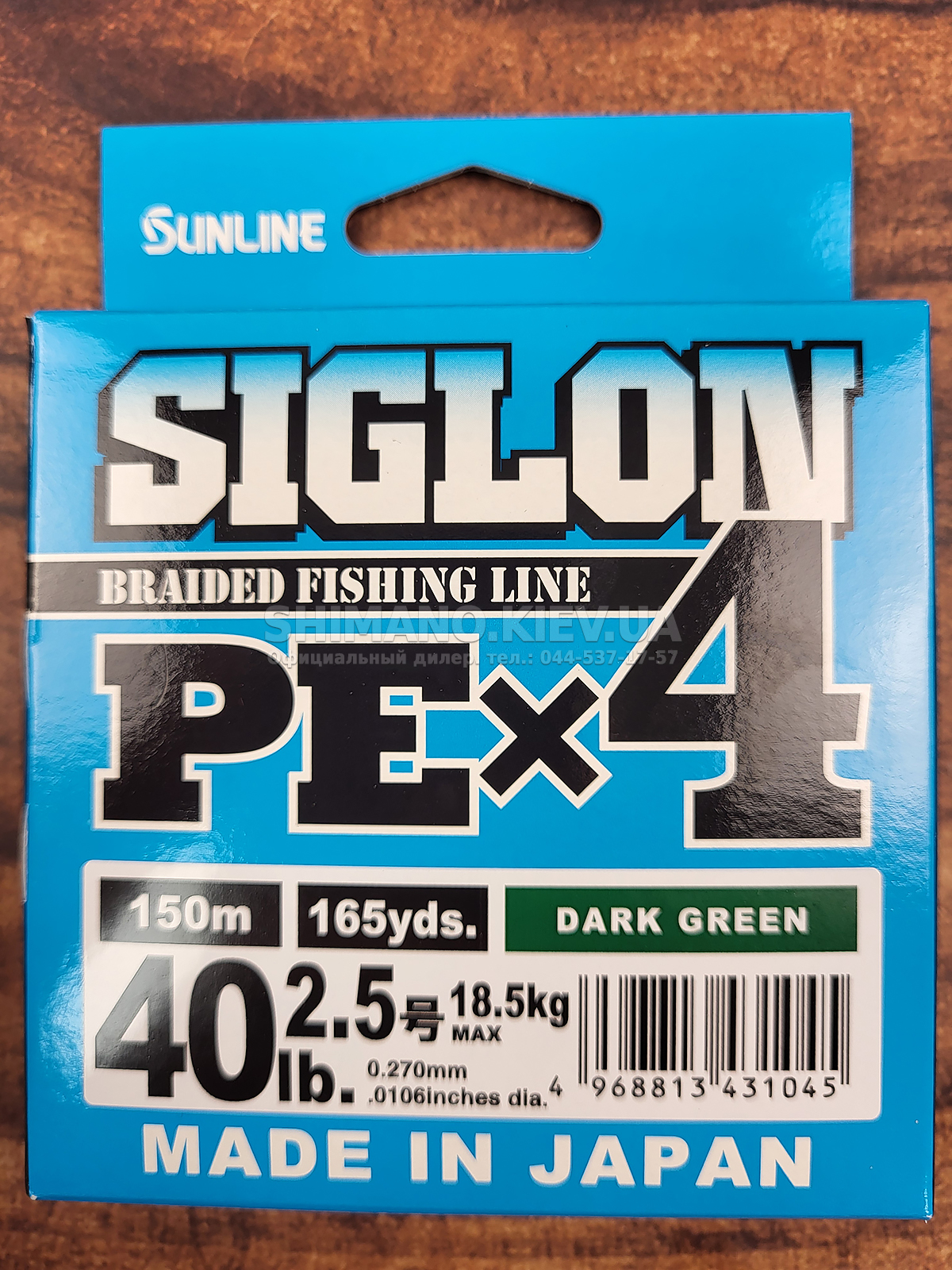 Опис Sunline Siglon PE х4 150m (темн-зел.) #2.5/0.270mm 40lb/18.5kg
