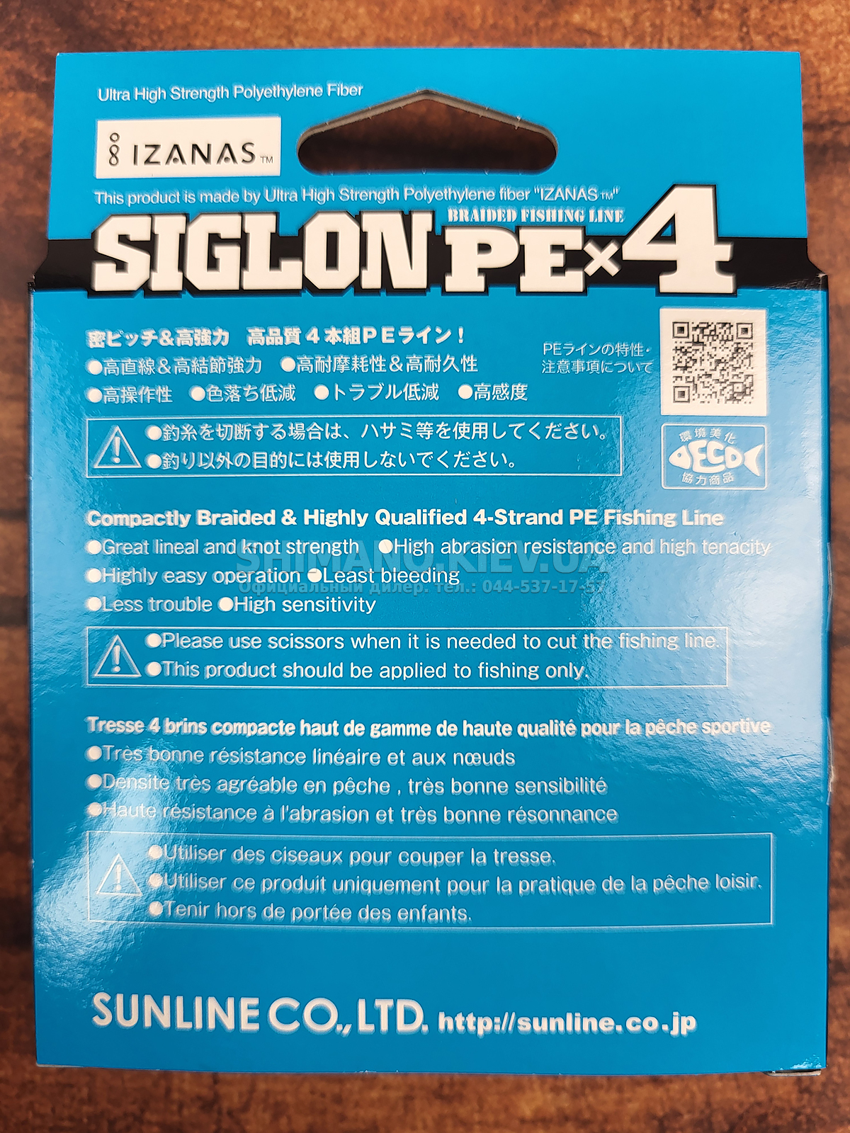 Представлена модель шнурів від японських розробників буквально увірвалася на світовий ринок риболовних снастей. У процесі розробки були використані сучасні нитки під назвою Excellent PE, завдяки яким модель Sunline Siglon PE x4 відрізняється наявністю спеціального круглого перерізу. Серед незаперечних технічних особливостей просто неможливо не відзначити величезний запас міцності, а також підвищений рівень зносостійкості до різних ушкоджень і деформацій.
