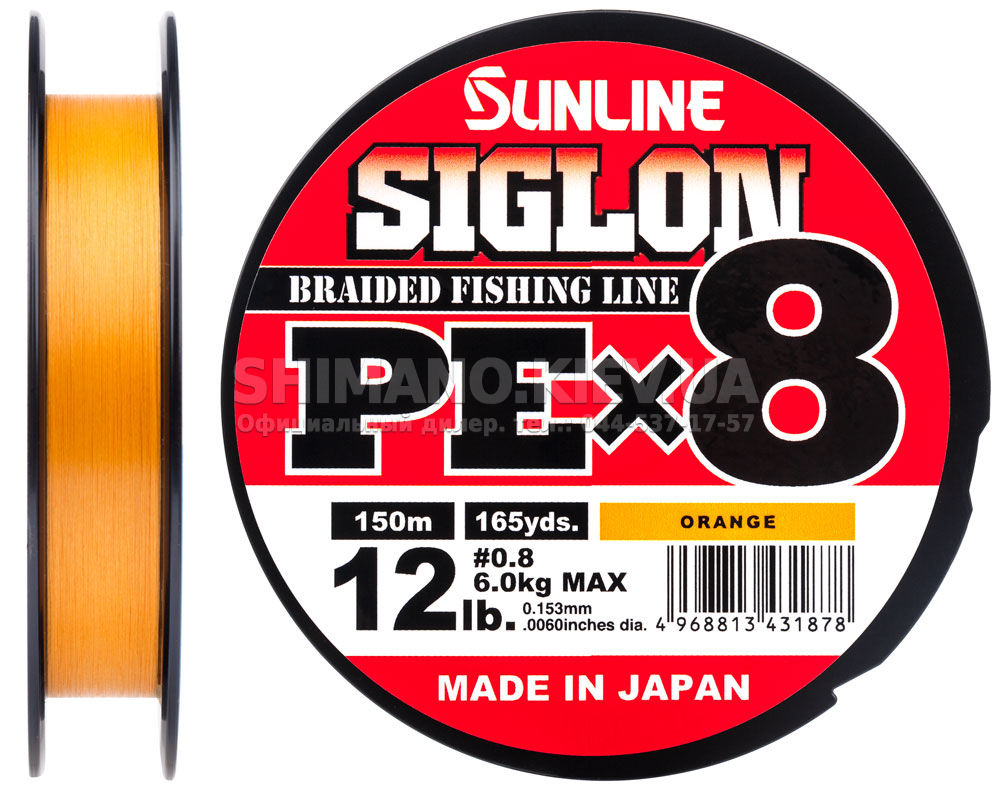 Шнур Sunline Siglon PE х8 150m (помаранч.) #0.8/0.153mm 12lb/6.0kg