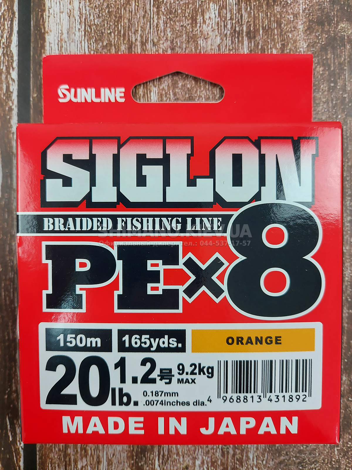Шнур Sunline Siglon PE х8 150m (помаранч.) #1.2/0.187mm 20lb/9.2kg