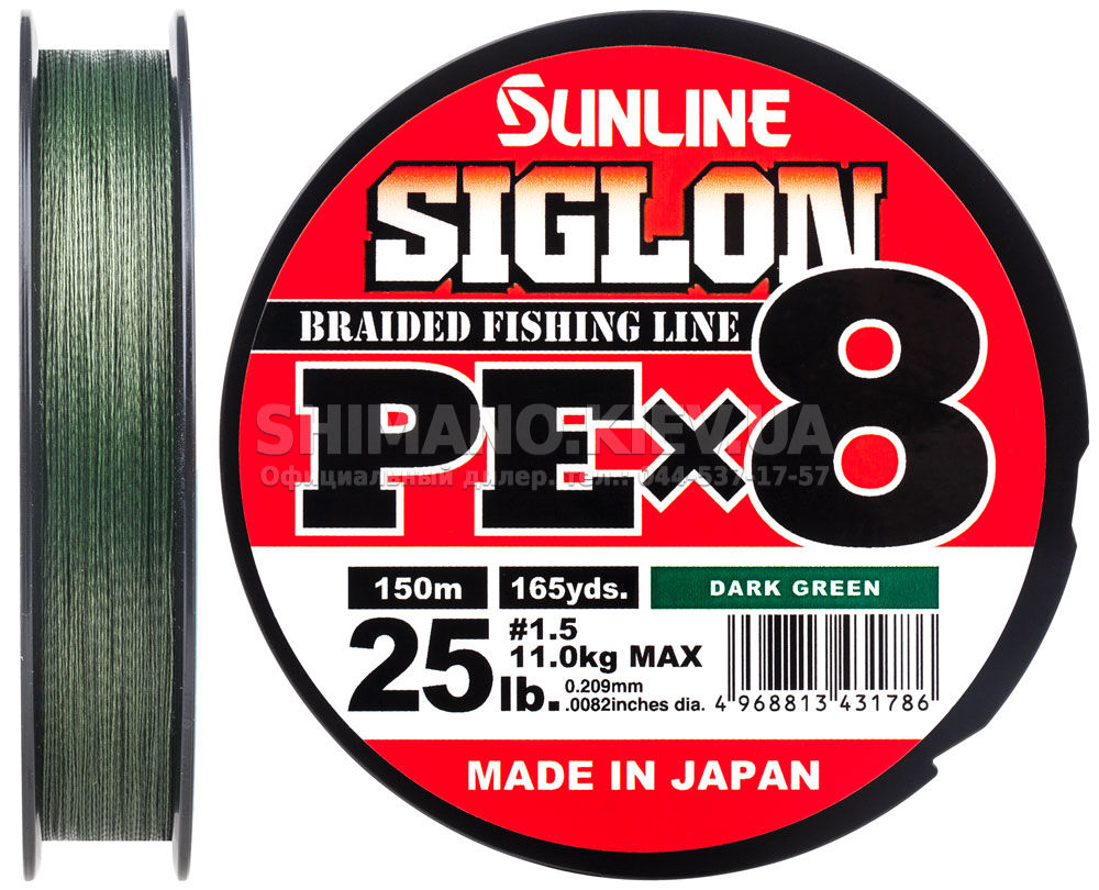 Шнур Sunline Siglon PE х8 150m (темн-зел.) #1.5/0.209mm 25lb/11.0kg