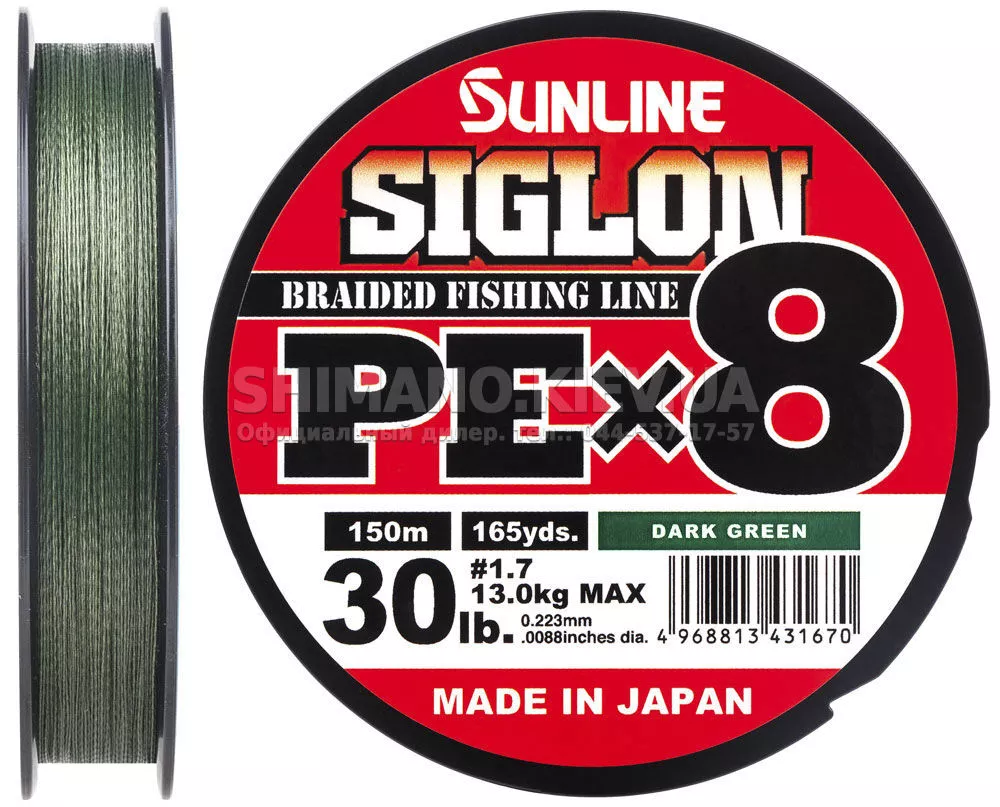 Шнур Sunline Siglon PE х8 150m (темн-зел.) #1.7/0.223mm 30lb/13.0kg