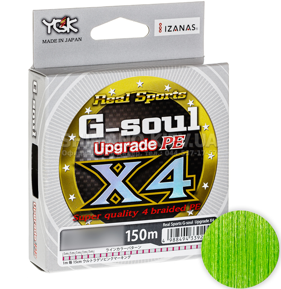 Шнур YGK G-Soul X4 Upgrade - чотирижильна варіація x8 Upgrade , модель позиціонується виробником як універсальна, підходяща для снастей будь-якого призначення - твічінг, джиг, лов на блешні, ультралайт, тролінг або фідер.