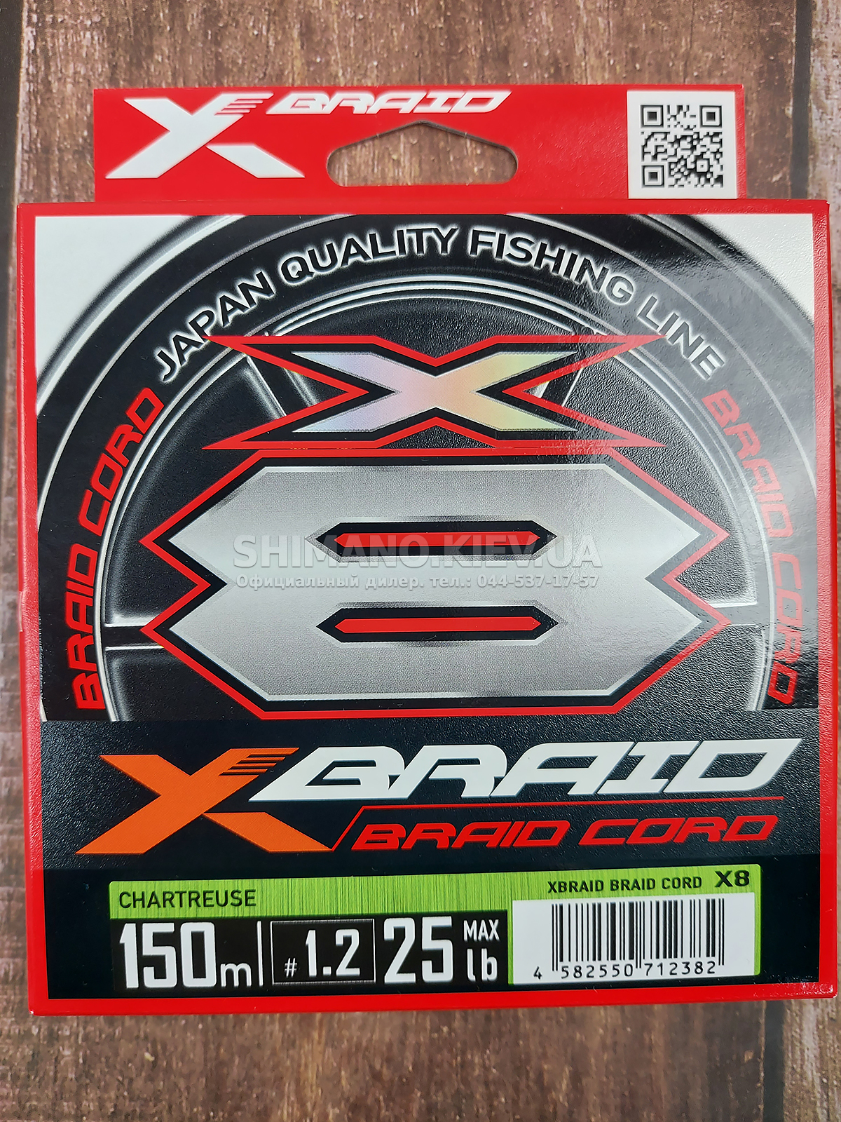 Шнур YGK X-Braid Braid Cord X8 150m #1.2/0.185mm 25lb/11.2kg