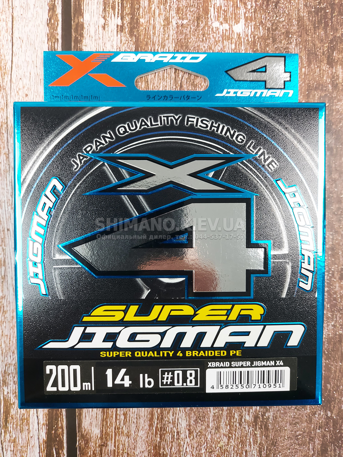 Шнур YGK X-Braid Super Jigman X4 200m #0.8/0.148mm 14Lb/6.3kg