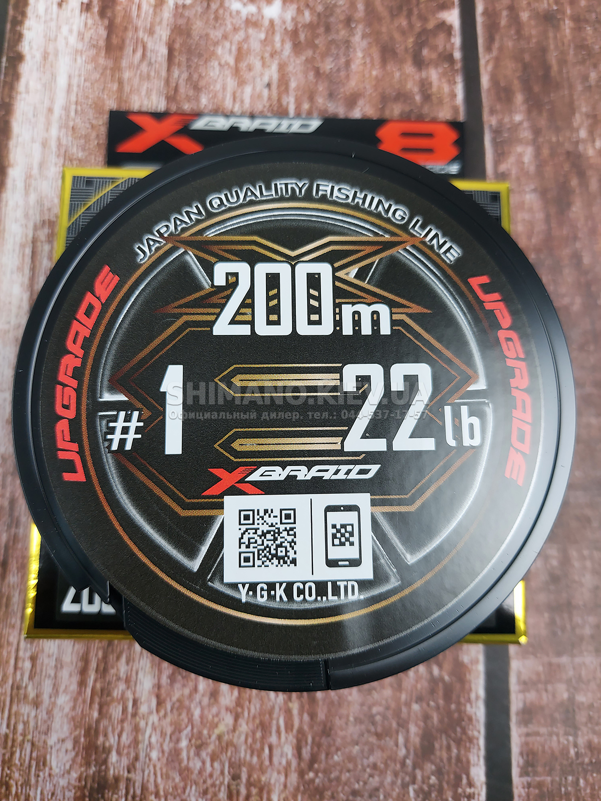 Шнур YGK X-Braid Upgrade X8 200m #1.0/0.165mm 22lb/10kg