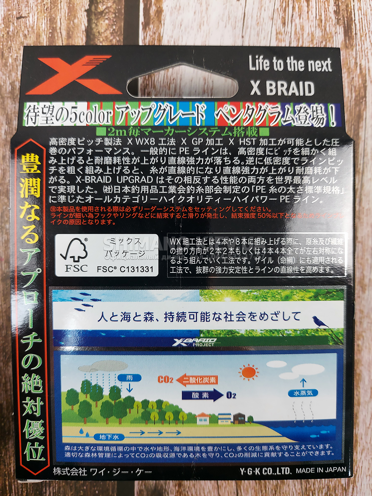 X-Braid Upgrade X8 Pentagram використовується у всіх видах спінінгової і кастингової риболовлі, особливо в тих, де важлива дальність закидання приманки. Також виправдано його застосування в фідері, де він також буде показувати відмінні результати. Шнур має особливе забарвлення - 5 кольорів, що змінюються через кожні 10 метрів, з мітками через кожні 2 метри. Це дозволяє контролювати дальність закидання і підвищити його видимість на фоні води.