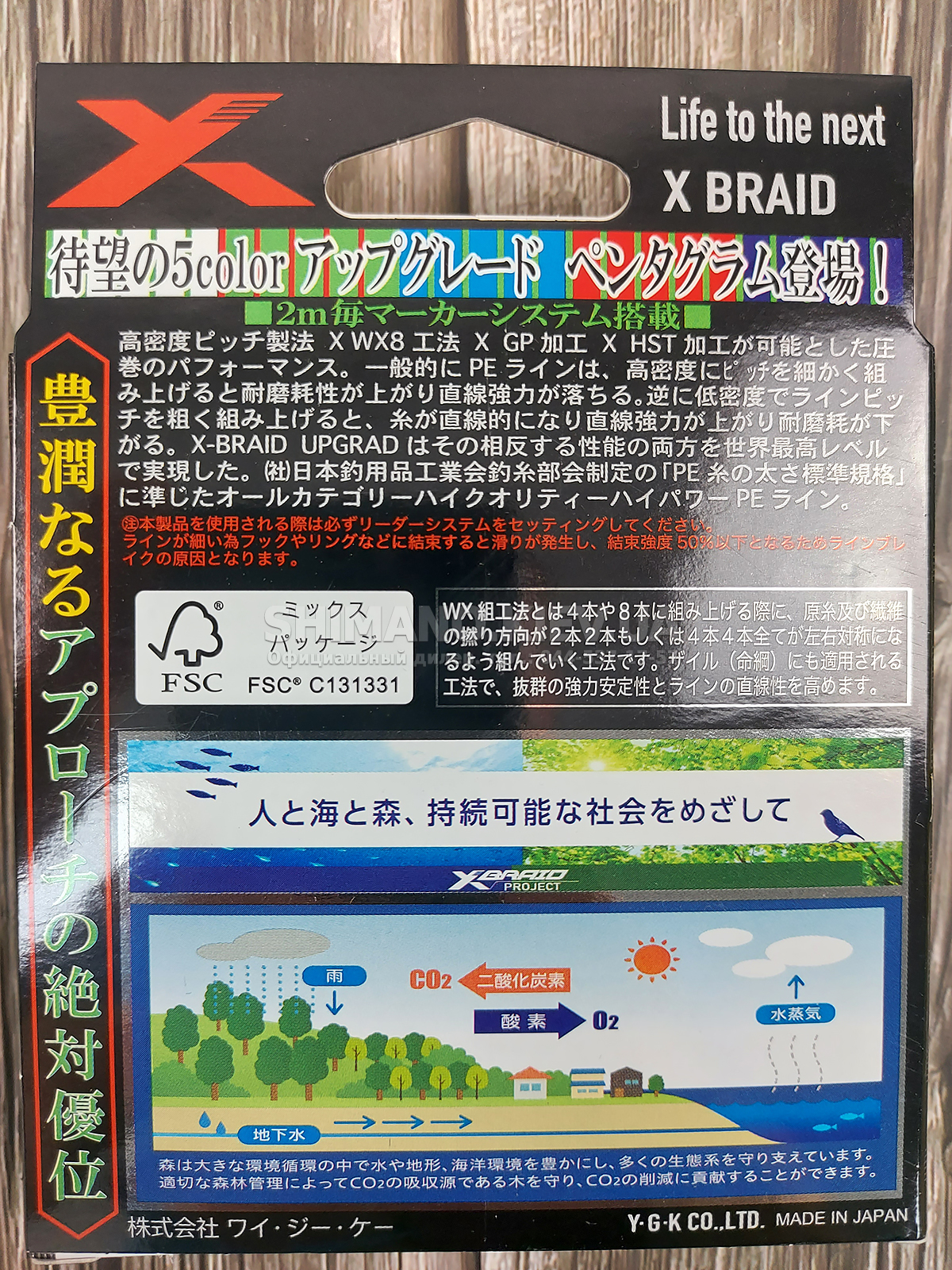 X-Braid Upgrade X8 Pentagram використовується у всіх видах спінінгової і кастингової риболовлі, особливо в тих, де важлива дальність закидання приманки. Також виправдано його застосування в фідері, де він також буде показувати відмінні результати. Шнур має особливе забарвлення - 5 кольорів, що змінюються через кожні 10 метрів, з мітками через кожні 2 метри. Це дозволяє контролювати дальність закидання і підвищити його видимість на фоні води.