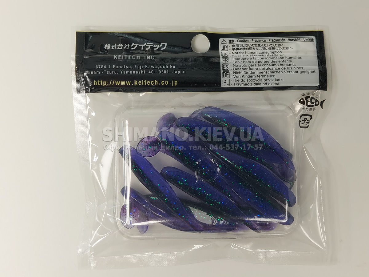Силікон Keitech Easy Shiner – яскравий представник "їстівного" силікону, що став дуже популярним в останні роки. ІзіШайнер має класичну форму мінноу. Це форма кормової риби, якою переважно і харчується будь-який хижак. А матеріал з якого зроблена приманка схиляє на клювання навіть самого пасивного хижака. Принада оснащена прорізом для офсетного гачка. Може використовуватися для лову на класичний джиг, "дроп-шот", "техас", а також для інших способів лову.