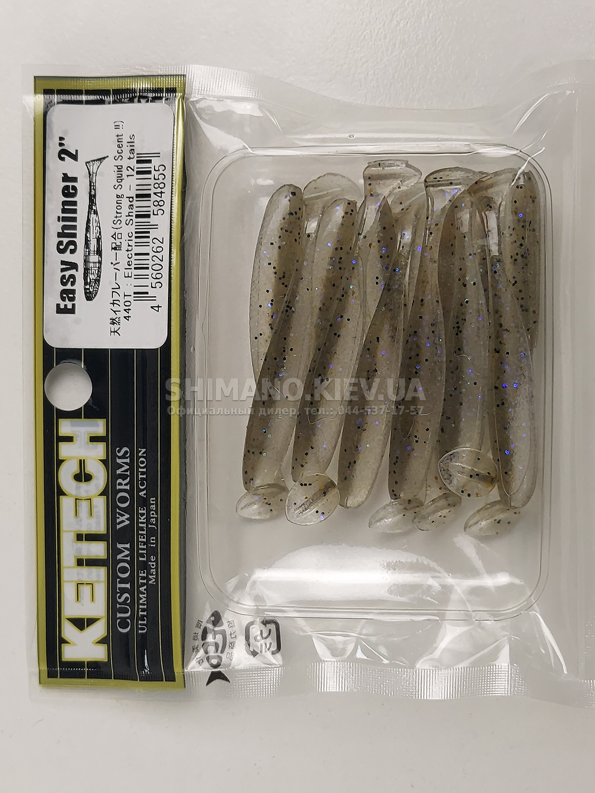 Силікон Keitech Easy Shiner – яскравий представник "їстівного" силікону, що став дуже популярним в останні роки. ІзіШайнер має класичну форму мінноу. Це форма кормової риби, якою переважно і харчується будь-який хижак. А матеріал з якого зроблена приманка схиляє на клювання навіть самого пасивного хижака. Принада оснащена прорізом для офсетного гачка. Може використовуватися для лову на класичний джиг, "дроп-шот", "техас", а також для інших способів лову.