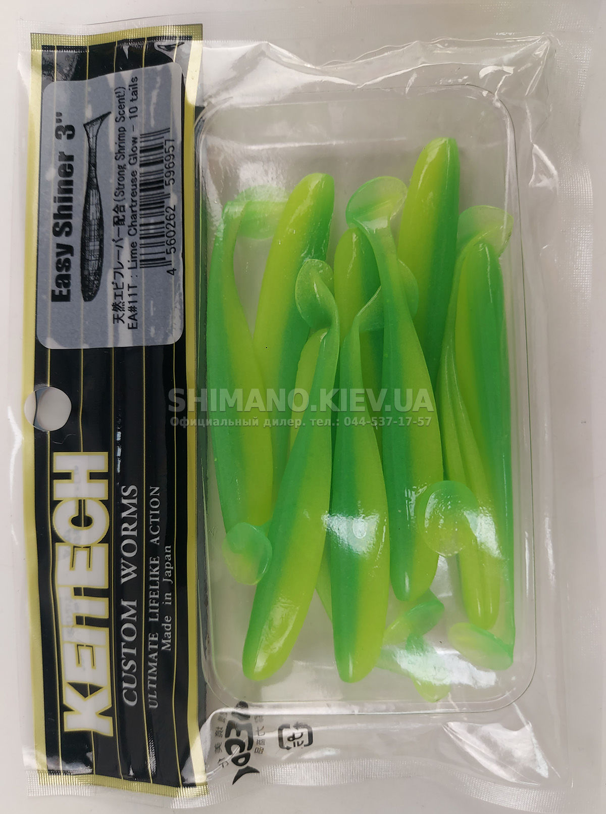 Силікон Keitech Easy Shiner 3" (10 шт/упак), колір:ea#11 limechartreuseglow