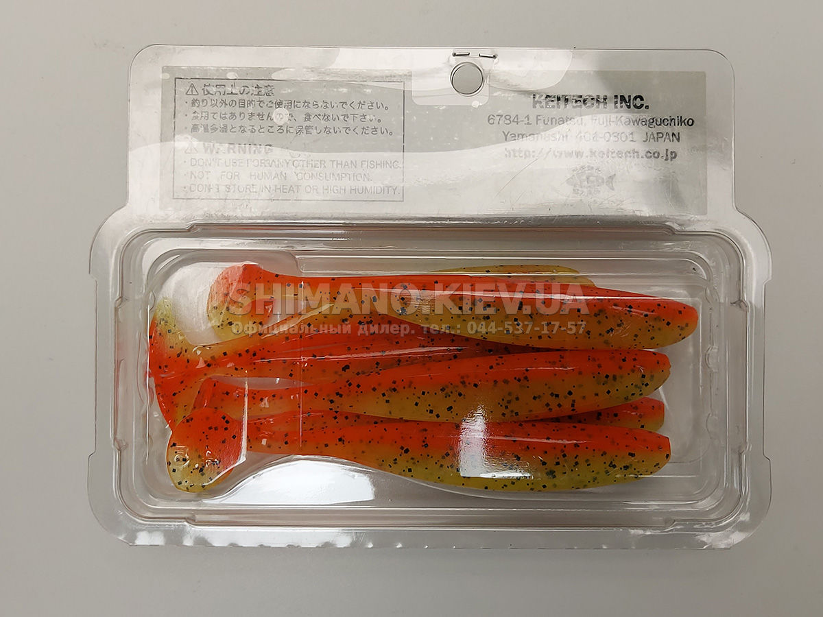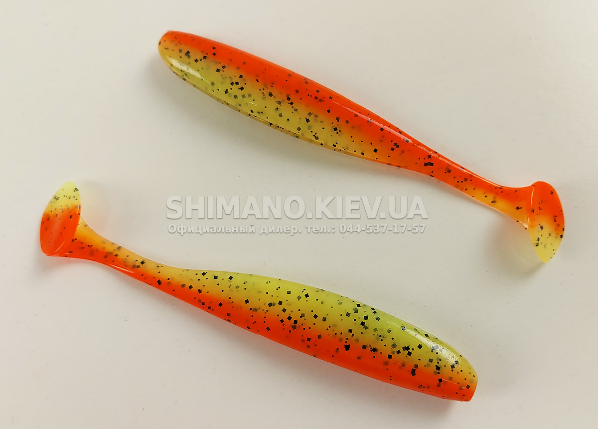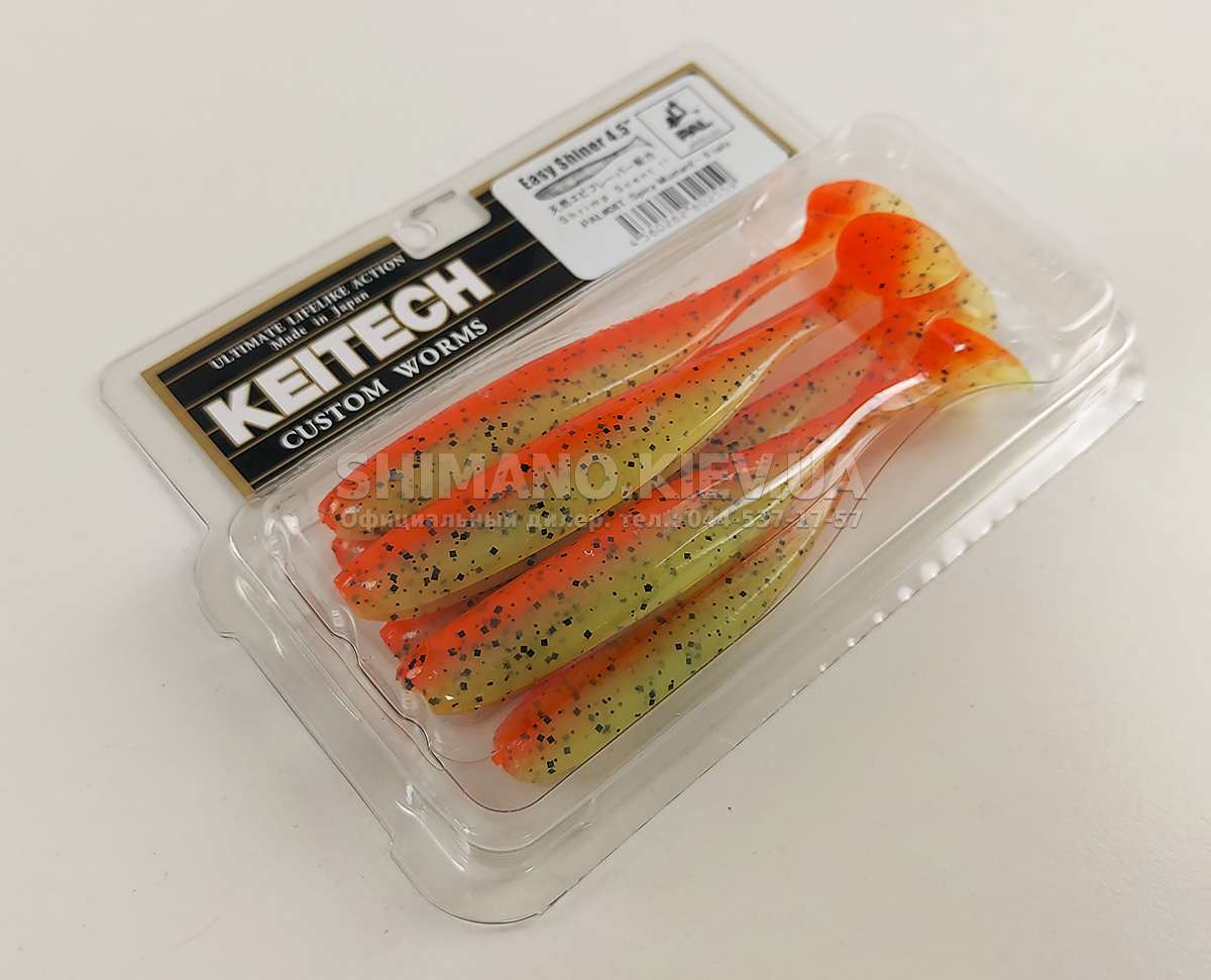 Силікон Keitech Easy Shiner – яскравий представник "їстівного" силікону, що став дуже популярним в останні роки. ІзіШайнер має класичну форму мінноу. Це форма кормової риби, якою переважно і харчується будь-який хижак. А матеріал з якого зроблена приманка схиляє на клювання навіть самого пасивного хижака. Принада оснащена прорізом для офсетного гачка. Може використовуватися для лову на класичний джиг, "дроп-шот", "техас", а також для інших способів лову.
