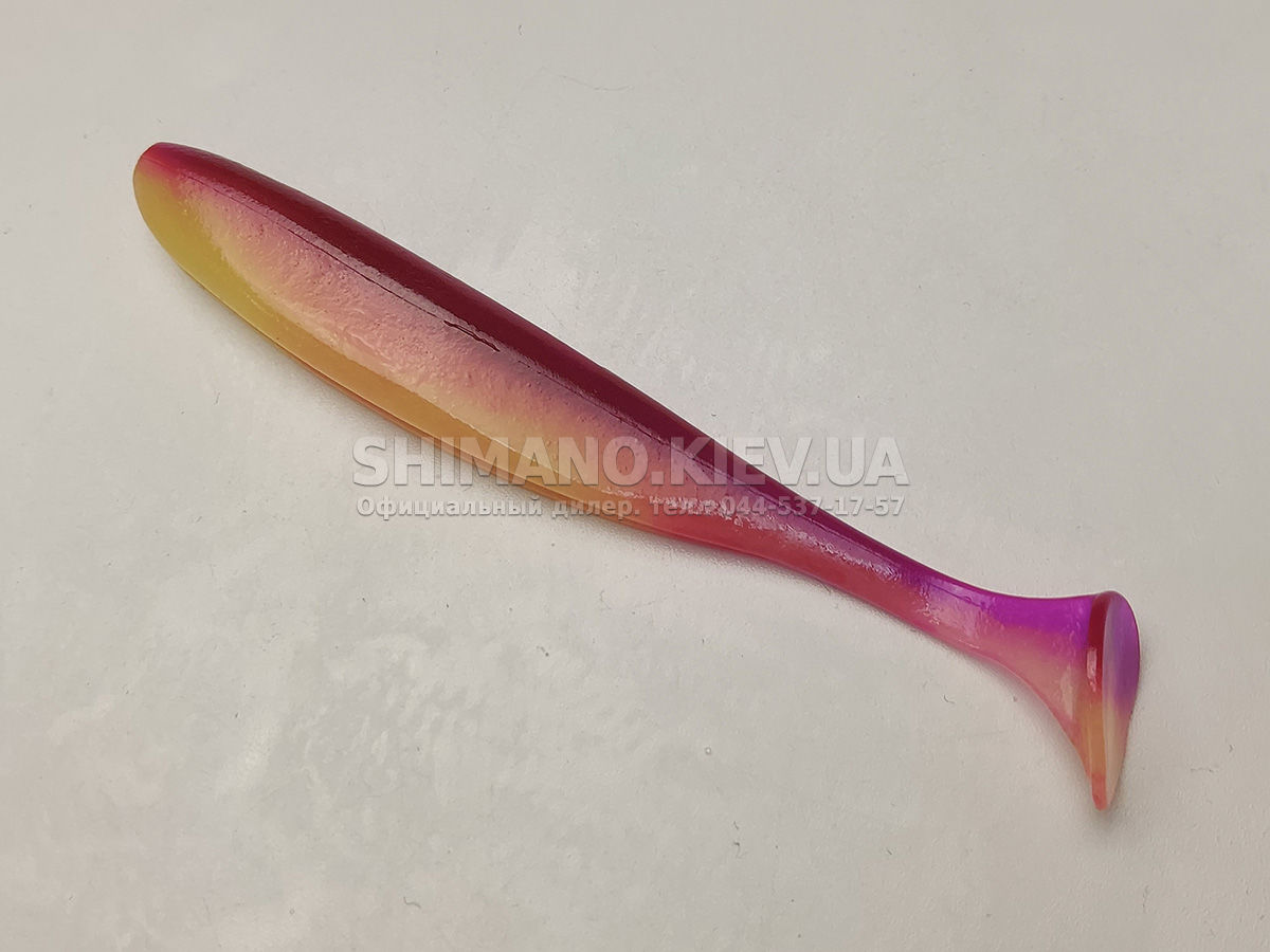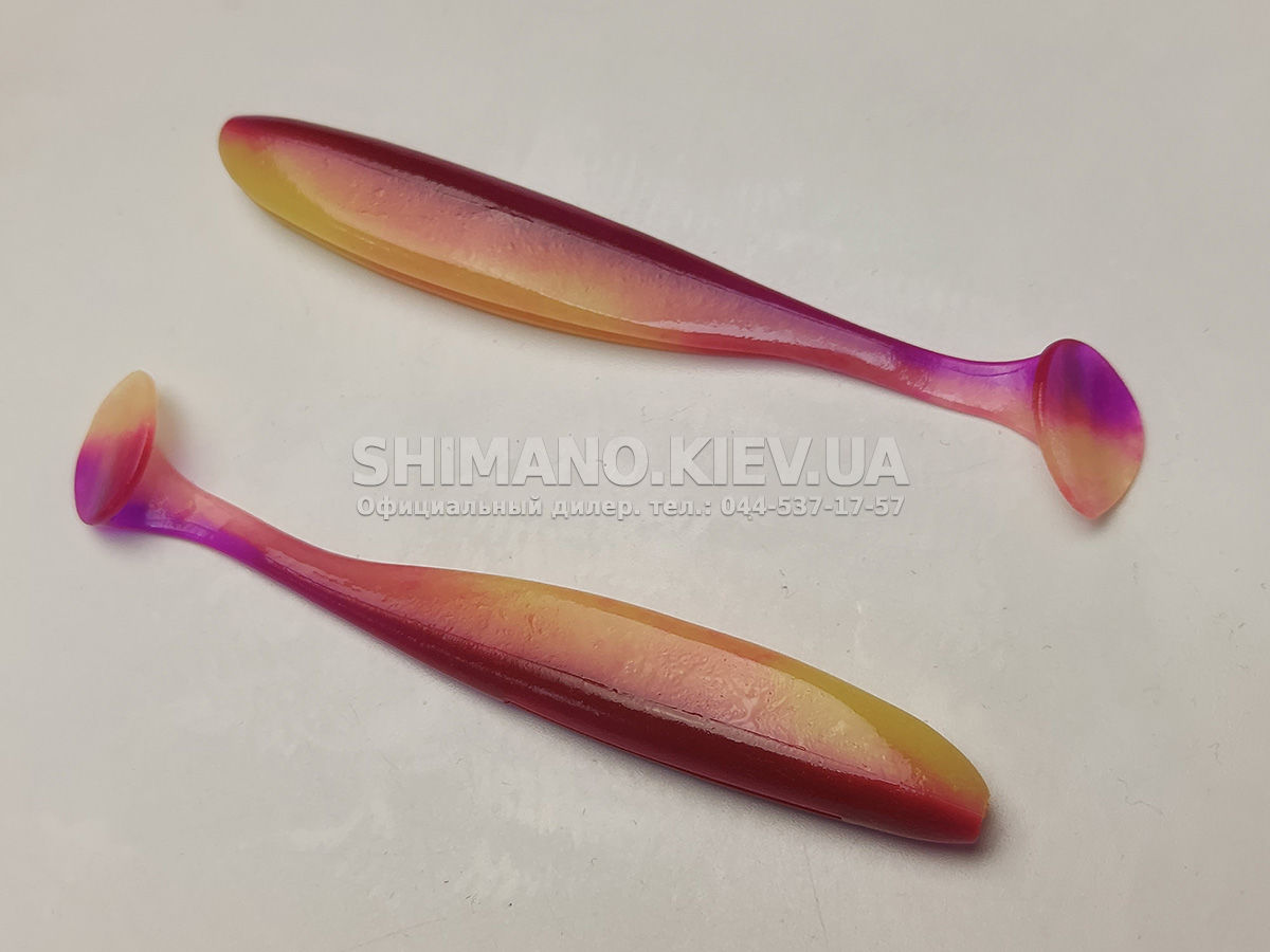 Силікон Keitech Easy Shiner – яскравий представник "їстівного" силікону, що став дуже популярним в останні роки. ІзіШайнер має класичну форму мінноу. Це форма кормової риби, якою переважно і харчується будь-який хижак. А матеріал з якого зроблена приманка схиляє на клювання навіть самого пасивного хижака. Принада оснащена прорізом для офсетного гачка. Може використовуватися для лову на класичний джиг, "дроп-шот", "техас", а також для інших способів лову.