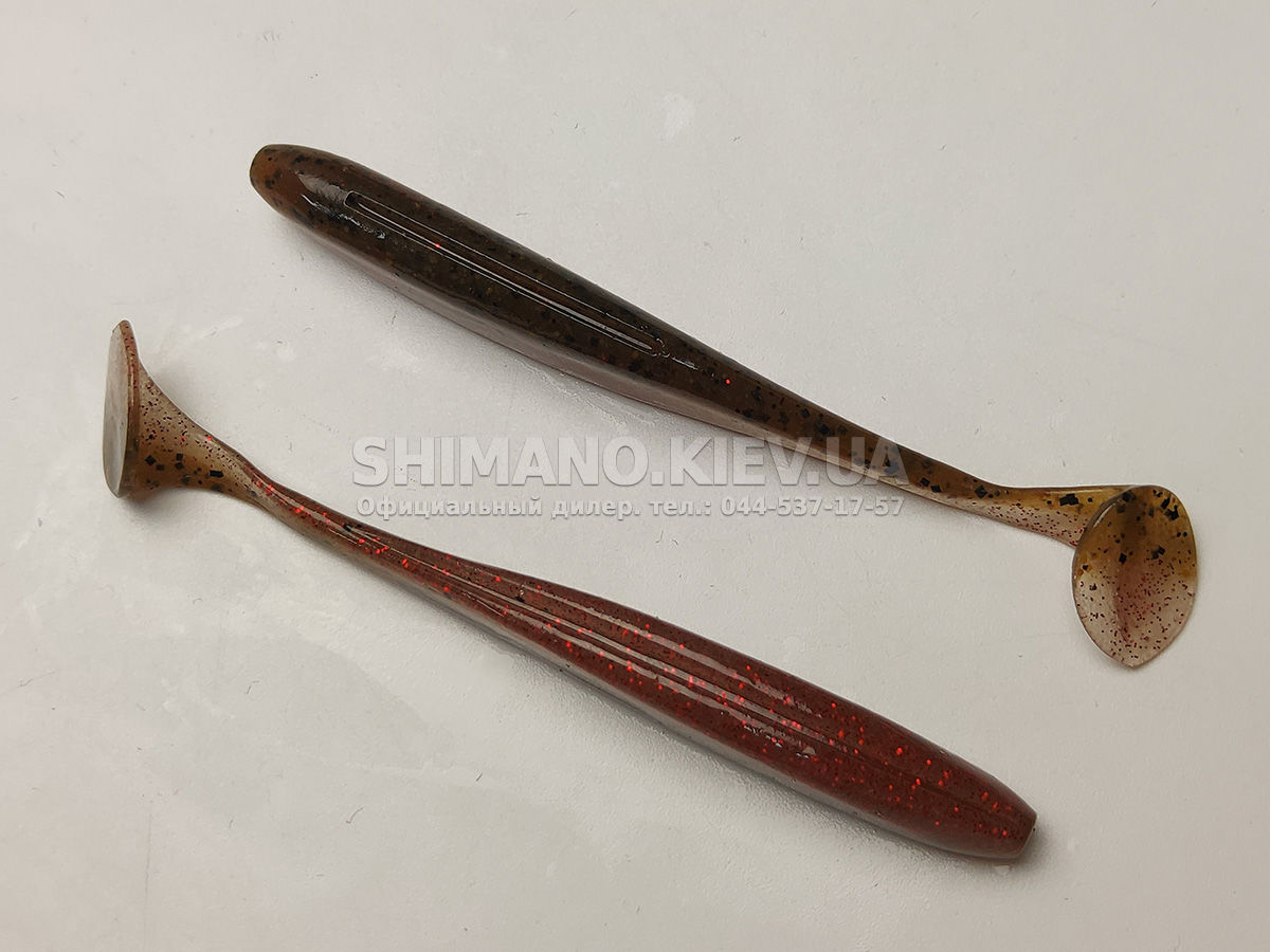 Силікон Keitech Easy Shiner – яскравий представник "їстівного" силікону, що став дуже популярним в останні роки. ІзіШайнер має класичну форму мінноу. Це форма кормової риби, якою переважно і харчується будь-який хижак. А матеріал з якого зроблена приманка схиляє на клювання навіть самого пасивного хижака. Принада оснащена прорізом для офсетного гачка. Може використовуватися для лову на класичний джиг, "дроп-шот", "техас", а також для інших способів лову.