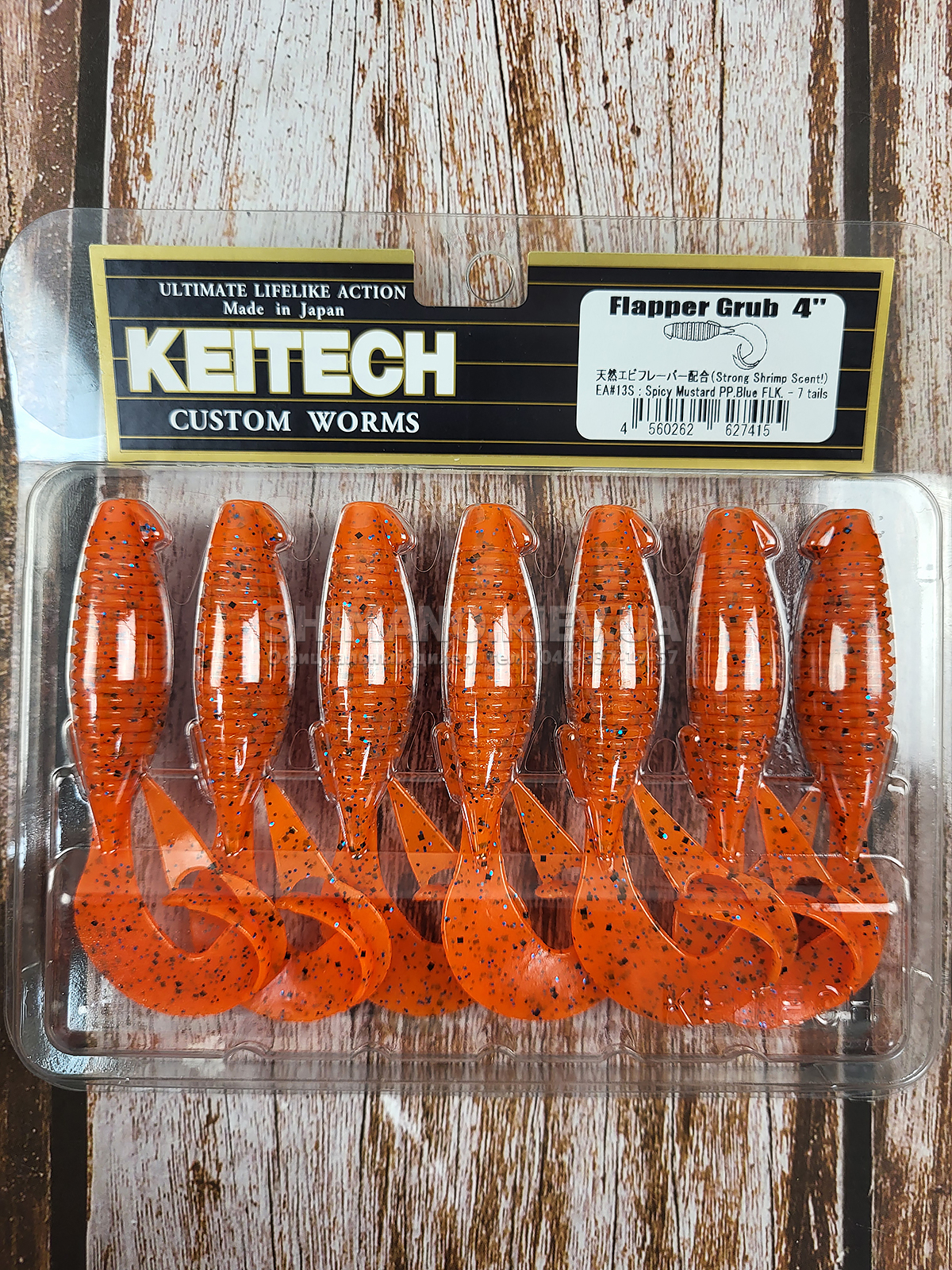 Силікон Keitech Flapper Grub 4" (7 шт/упак), колір:ea#13 spicy mustard/blue