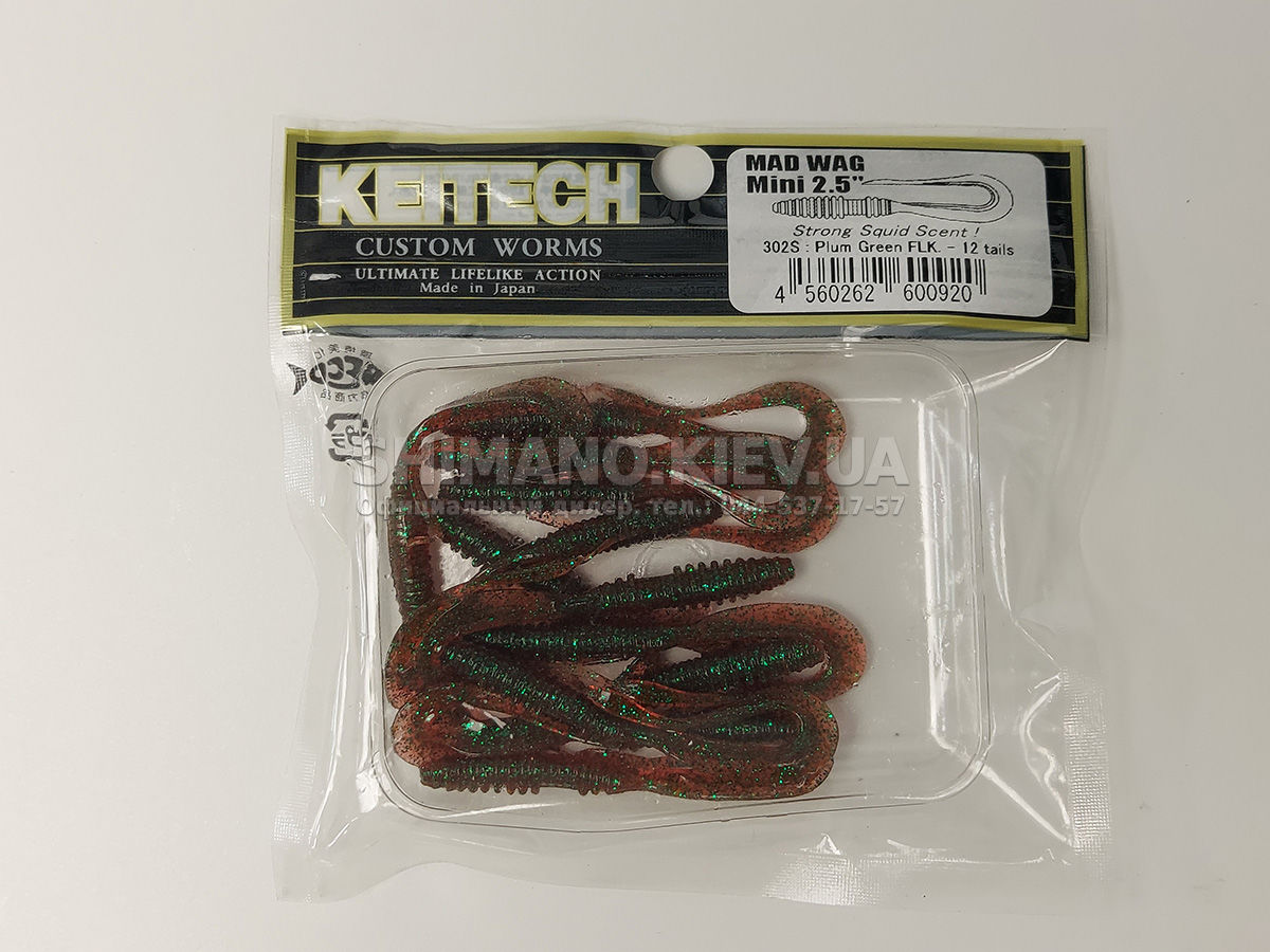 Силікон Keitech Mad Wag Mini 2.5" (12 шт/упак), колір:302 plum green flk.