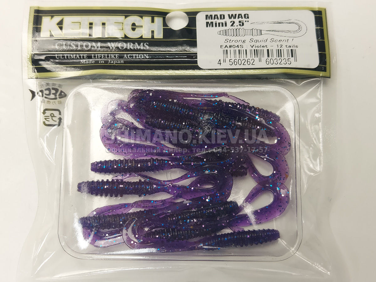 Силікон Keitech Mad Wag Mini 2.5" (12 шт/упак), колір:ea#04 violet