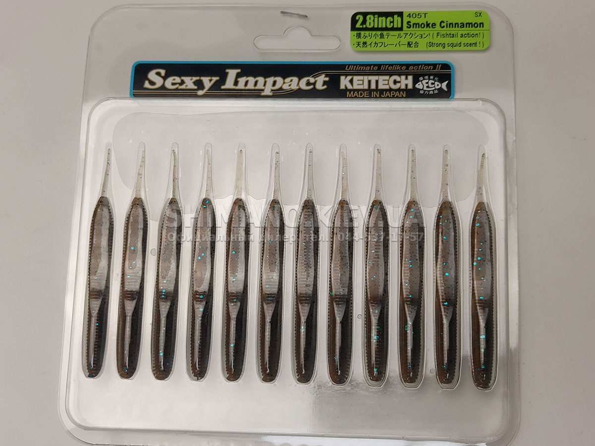 Sexy Impact - дуже оригінальна приманка класу слаг. Тіло приманки має складну форму: кругле в передній частині, сплощена у вертикальній площині, задня частина закінчується довгим, тонким і дуже рухливим хвостиком. Зверху знаходиться спеціальне вилучення для офсетного гачка.