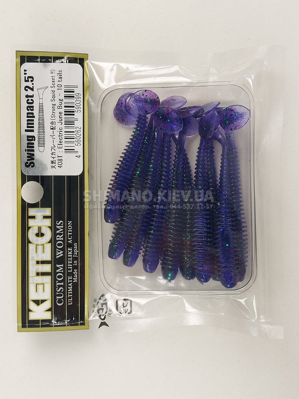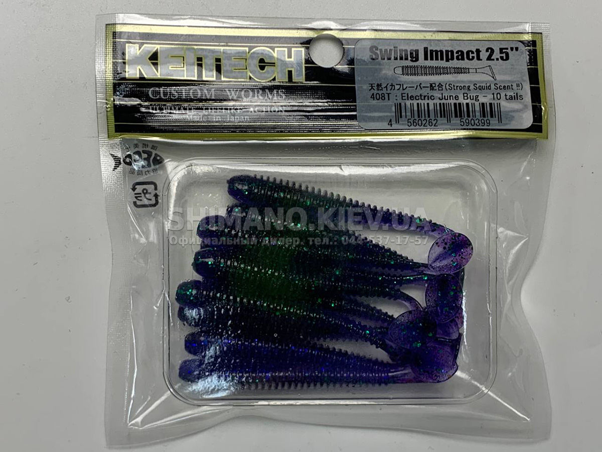 Силікон Keitech Swing Impact 2.5" (10 шт/упак), колір:408 electric june bug