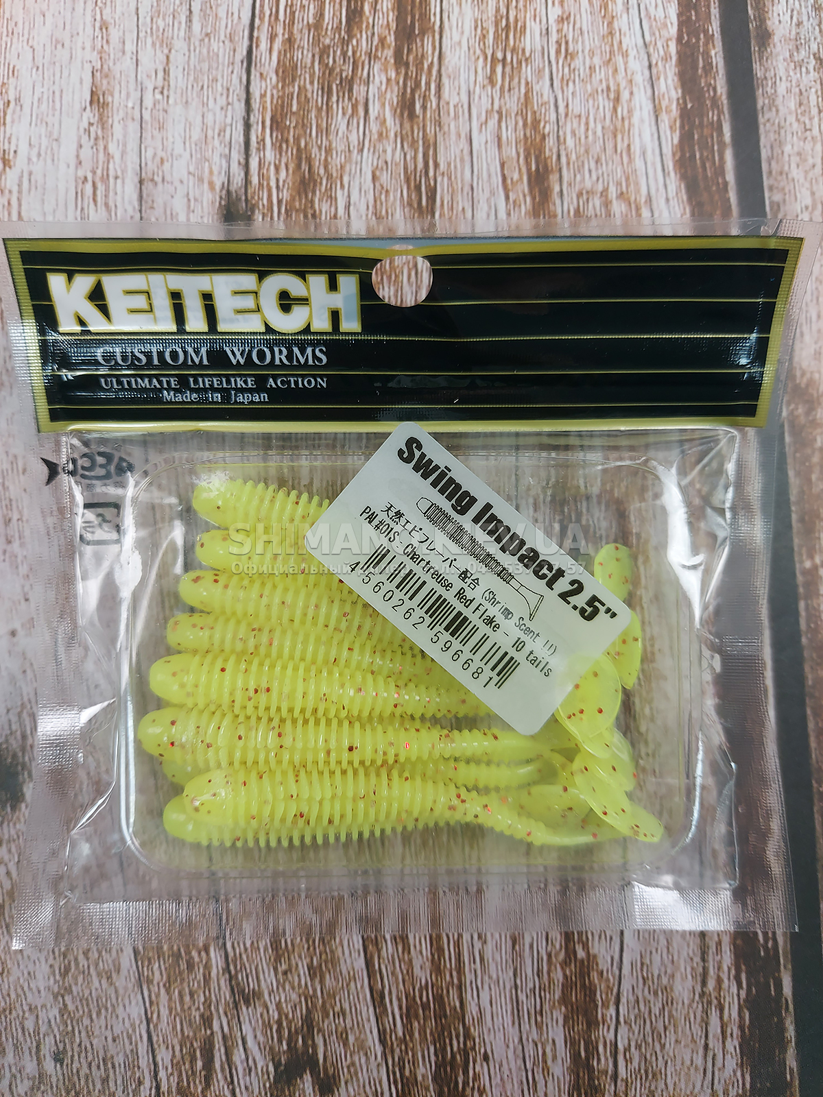 Силікон Keitech Swing Impact 2.5" (10 шт/упак), колір:pal#01 chartreuseredflake