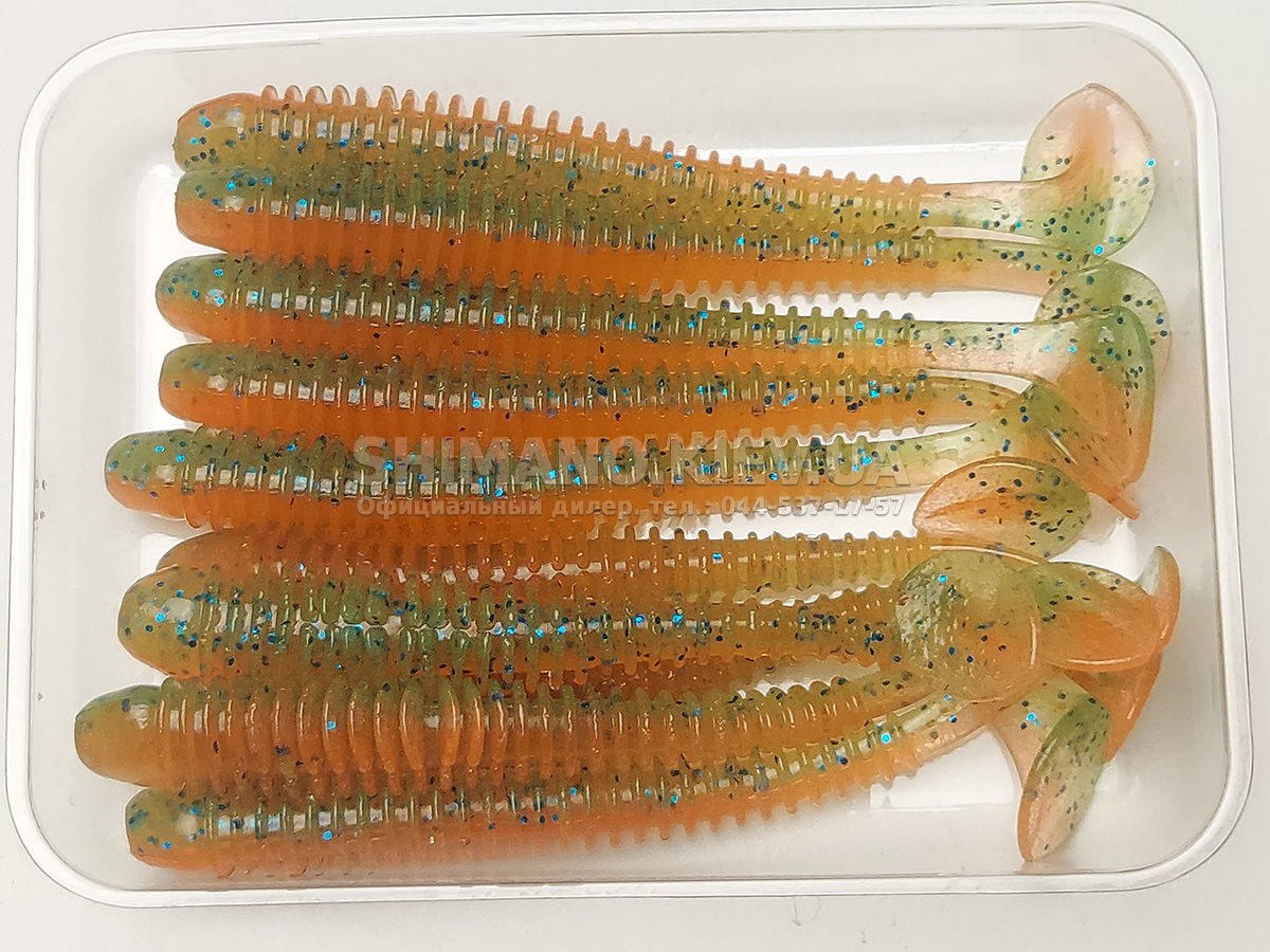 П'ята віброхвоста дуже рухлива і включається в гру при найповільнішій проводці. Ребристість на тілі приманки створює додаткові обурення у водному середовищі, що приваблюють хижака з великої відстані.
