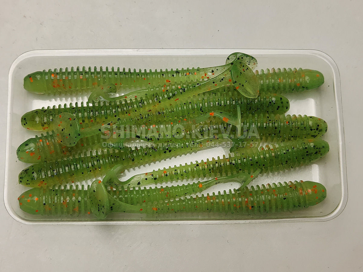 П'ята віброхвоста дуже рухлива і включається в гру при найповільнішій проводці. Ребристість на тілі приманки створює додаткові обурення у водному середовищі, що приваблюють хижака з великої відстані.