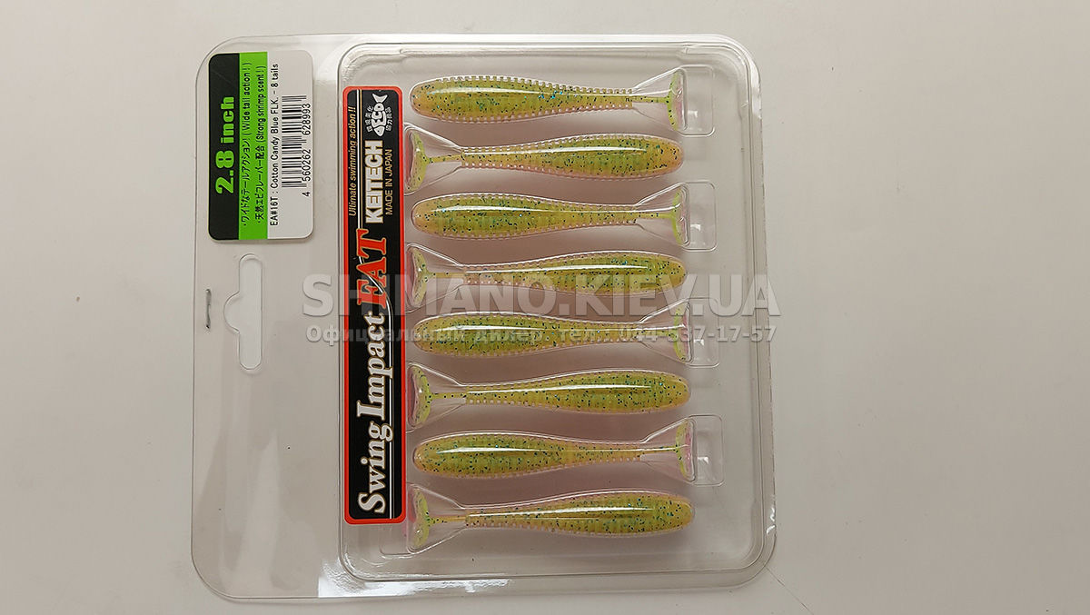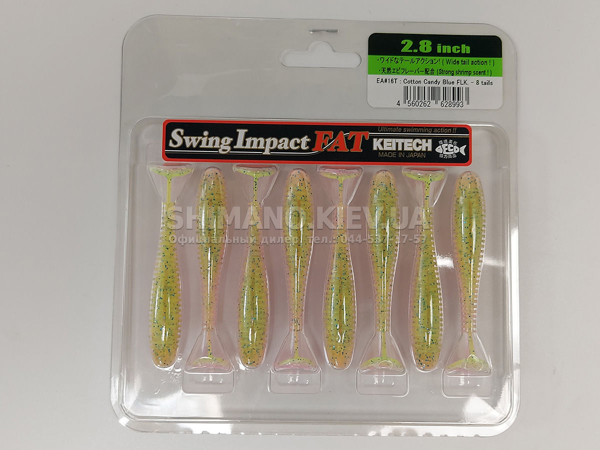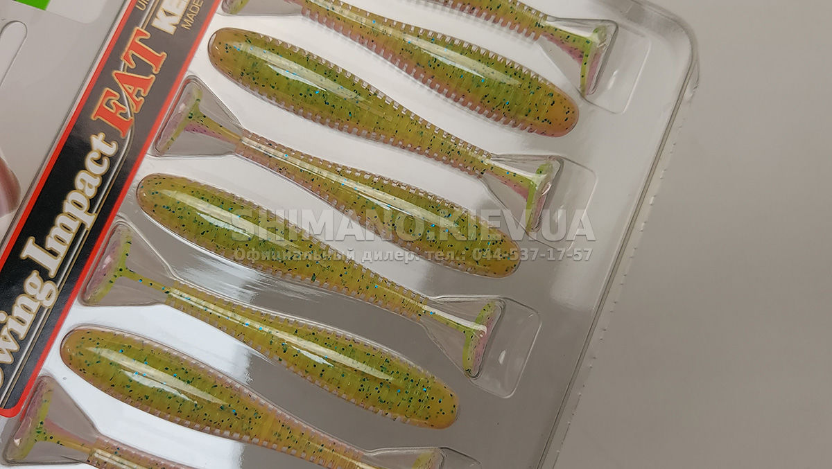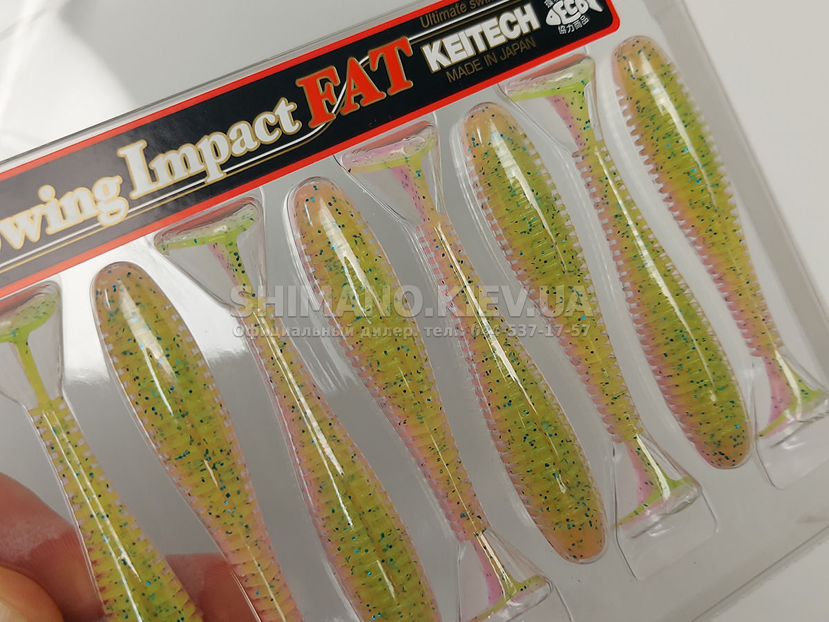 Силікон Keitech Swing Impact Fat – «Товста» версія Swing Impact. Має більш коротке та м'ясисте тіло. Завдяки ребристості та широкій рухомій п'яті створює у воді потужніші коливання, ніж звичайна версія.