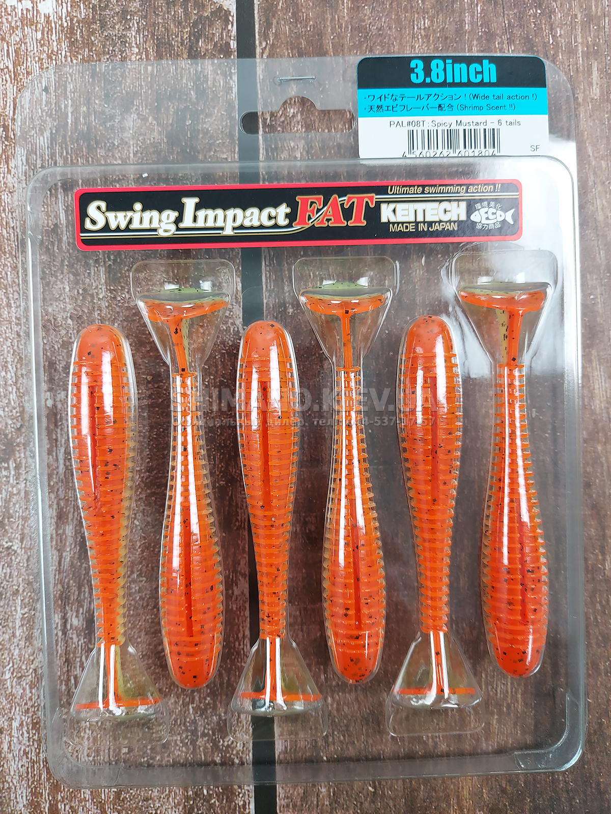 Силікон Keitech Swing Impact Fat – «Товста» версія Swing Impact. Має більш коротке та м'ясисте тіло. Завдяки ребристості та широкій рухомій п'яті створює у воді потужніші коливання, ніж звичайна версія.
