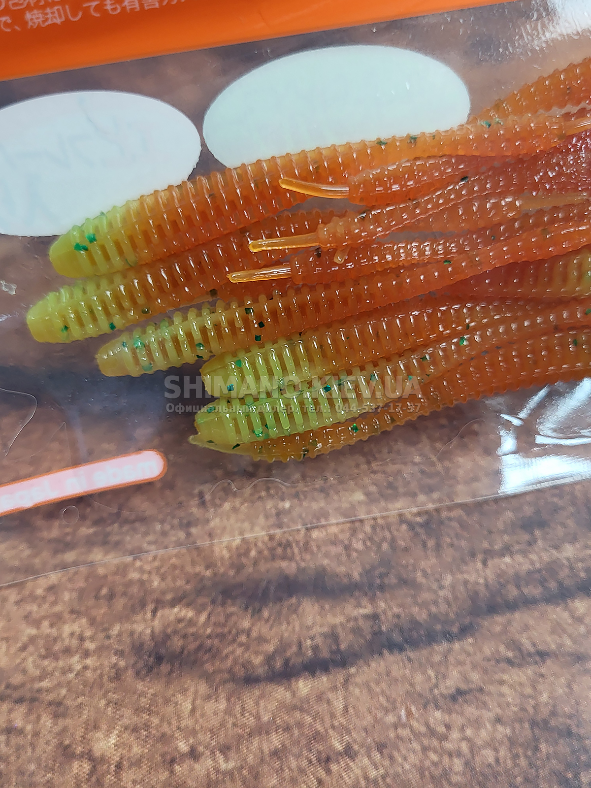 Це представник так званих їстівних хробаків у кольорі 308 Marble Chart Orange розміром 3" застосовується для упіймання судака, окуня і звичайно щуки. Тіло довгасте і закінчується потовщеним хвостиком з жалом на кінці. Здійснюючи проводку необхідно пам'ятати
