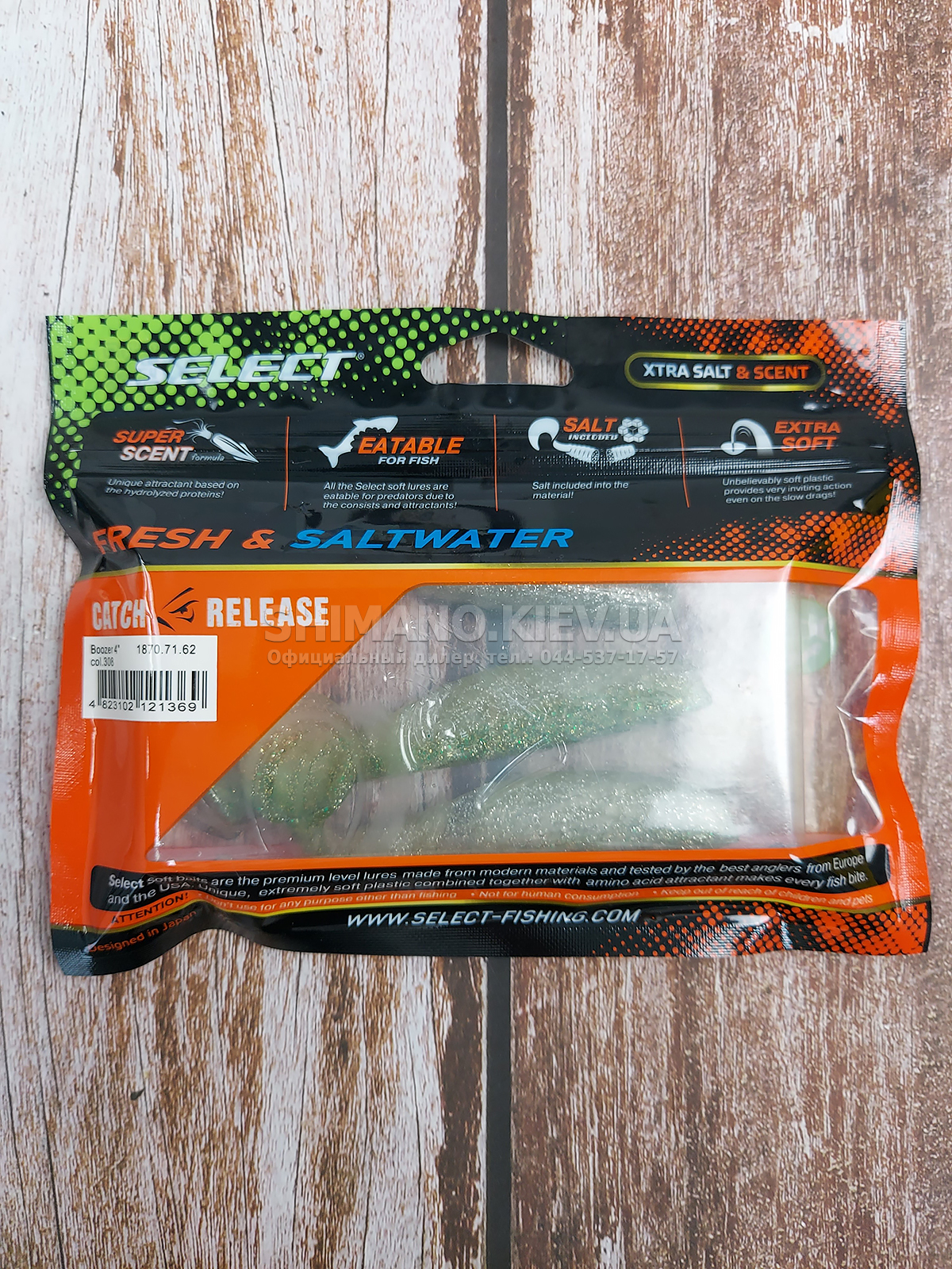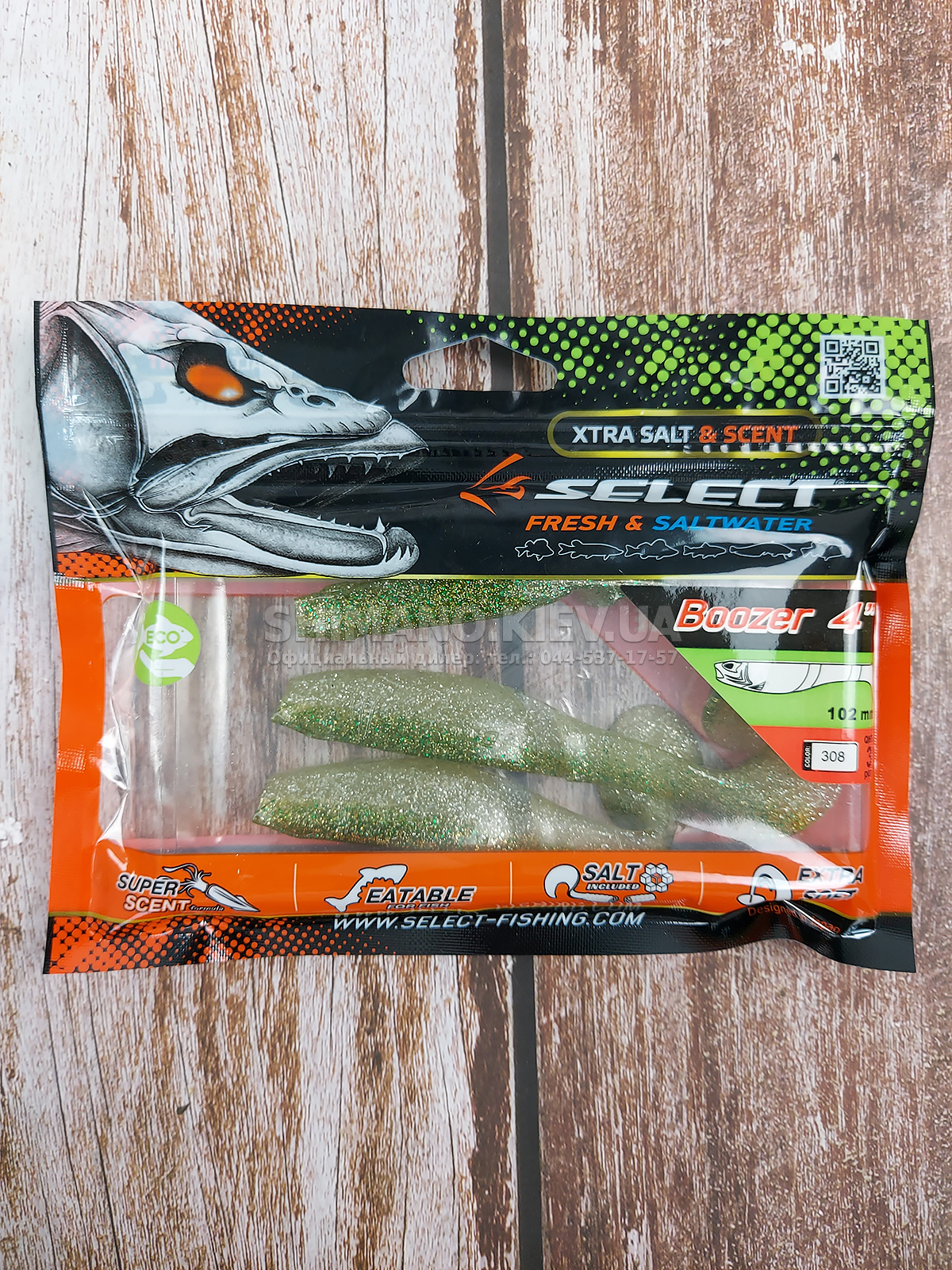 SELECT Boozer - їстівний віброхвіст з об'ємним тілом, масивною п'ятою та незвичайною формою хвоста. Саме форма хвоста, а точніше хвостові прорізи у вигляді кишень роблять цю приманку унікальною! Під час руху вода потрапляє в ці кишені і моментально включає хвіст, завдяки чому приманка грає на будь-якій, навіть найменшій швидкості проводки. Також це дозволяє використовувати найменші ваги, а значить SELECT Boozer ідеально підходить для риболовлі як на річках, так і на озерах.