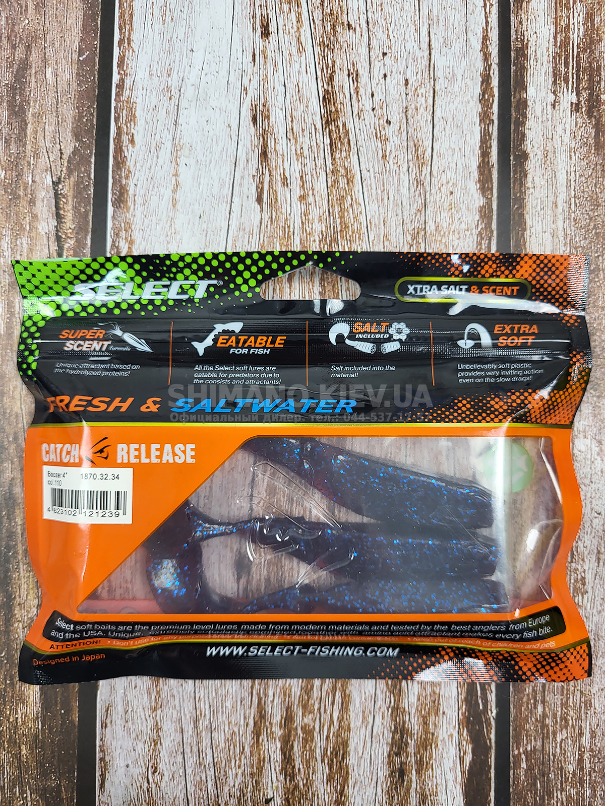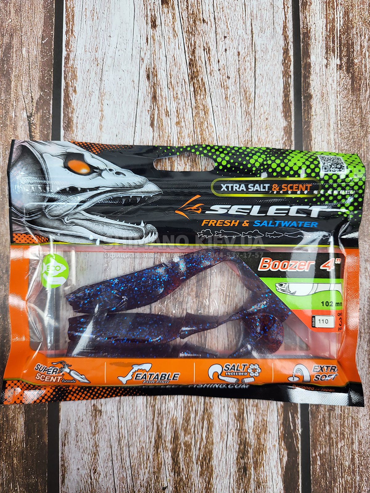 SELECT Boozer - їстівний віброхвіст з об'ємним тілом, масивною п'ятою та незвичайною формою хвоста. Саме форма хвоста, а точніше хвостові прорізи у вигляді кишень роблять цю приманку унікальною! Під час руху вода потрапляє в ці кишені і моментально включає хвіст, завдяки чому приманка грає на будь-якій, навіть найменшій швидкості проводки. Також це дозволяє використовувати найменші ваги, а значить SELECT Boozer ідеально підходить для риболовлі як на річках, так і на озерах.