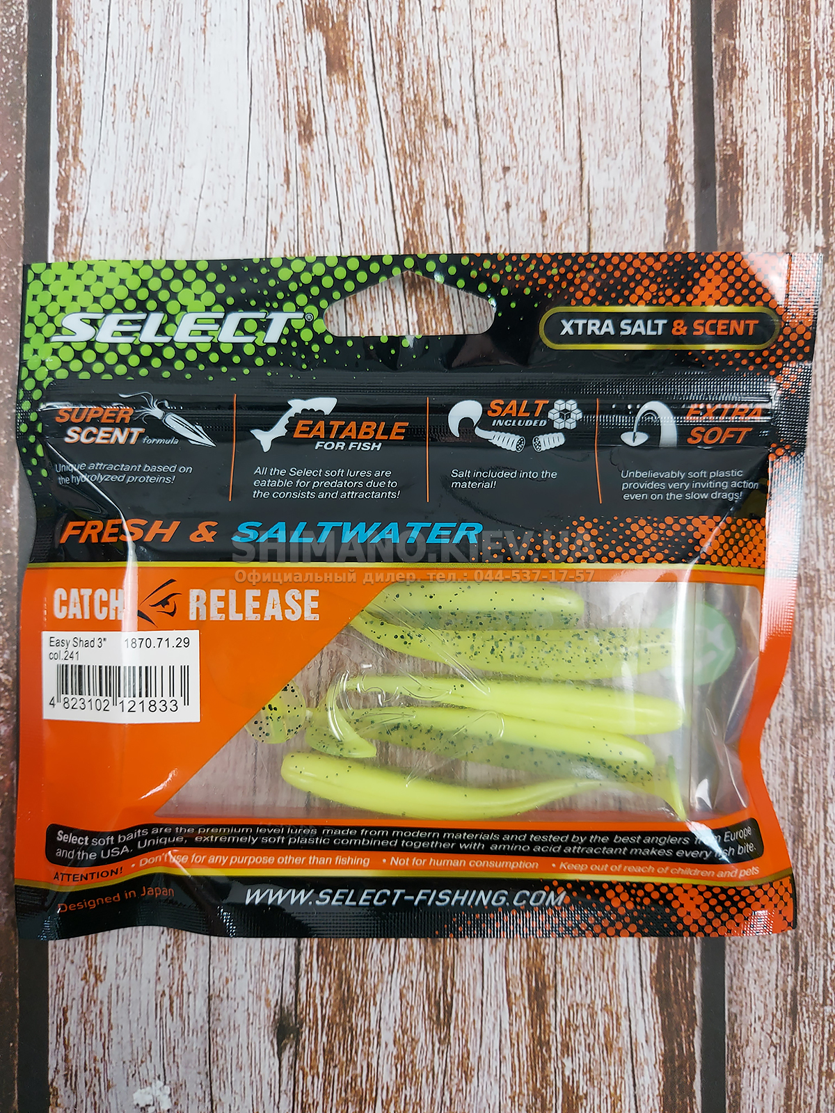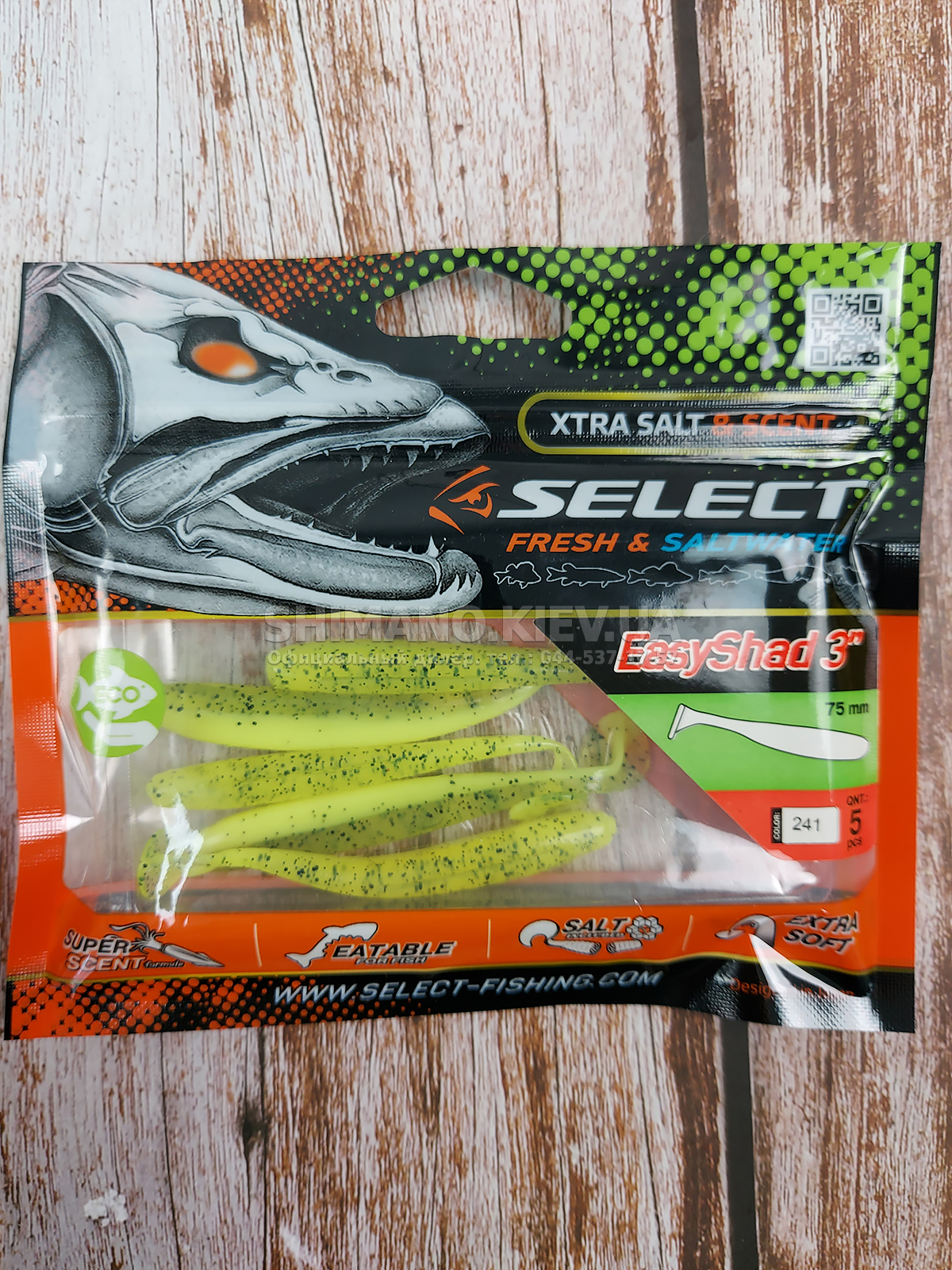 Популярна форма віброхвісту SELECT Easy Shad для лову судака, щуки та великого окуня. Принади володіють усім, щоб привернути увагу хижої риби - форма малька, еластичний їстівний матеріал і активний хвіст, що створює неймовірні коливання у воді.