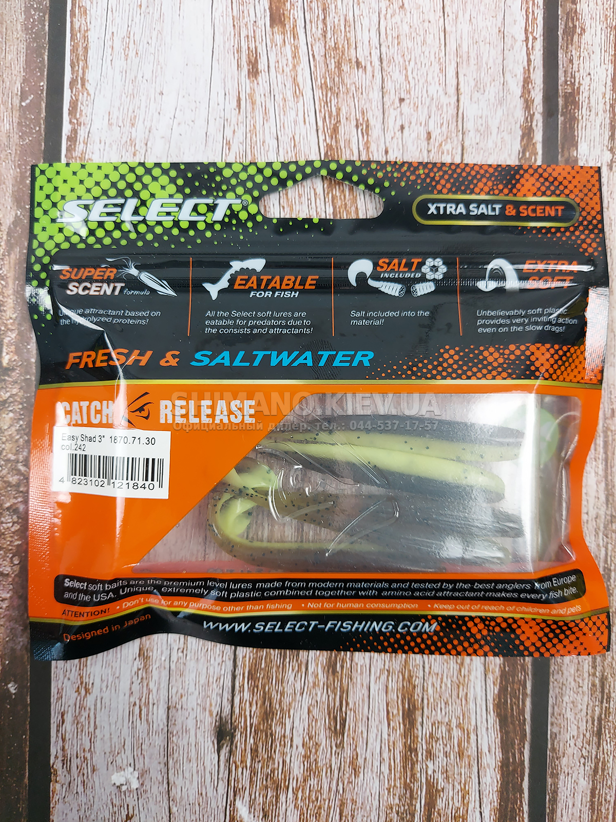 Популярна форма віброхвісту SELECT Easy Shad для лову судака, щуки та великого окуня. Принади володіють усім, щоб привернути увагу хижої риби - форма малька, еластичний їстівний матеріал і активний хвіст, що створює неймовірні коливання у воді.