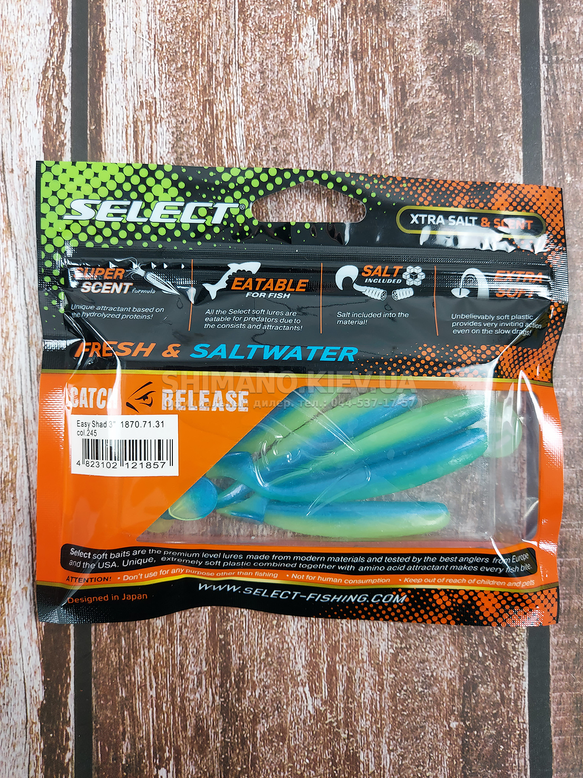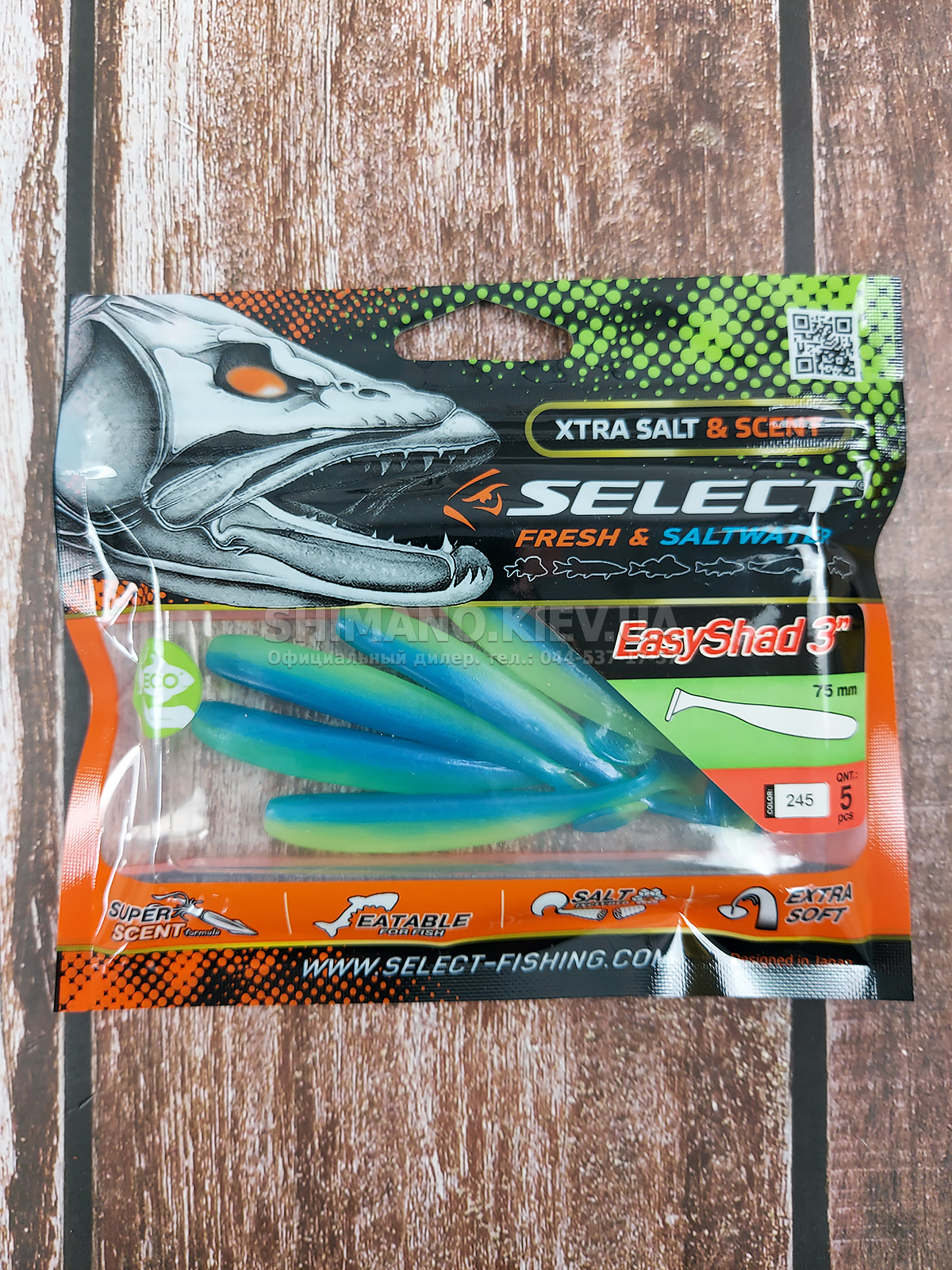 Популярна форма віброхвісту SELECT Easy Shad для лову судака, щуки та великого окуня. Принади володіють усім, щоб привернути увагу хижої риби - форма малька, еластичний їстівний матеріал і активний хвіст, що створює неймовірні коливання у воді.
