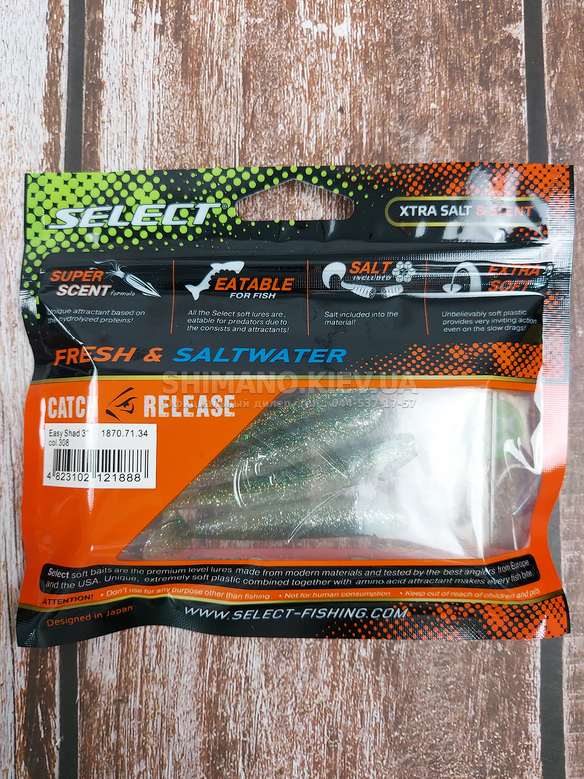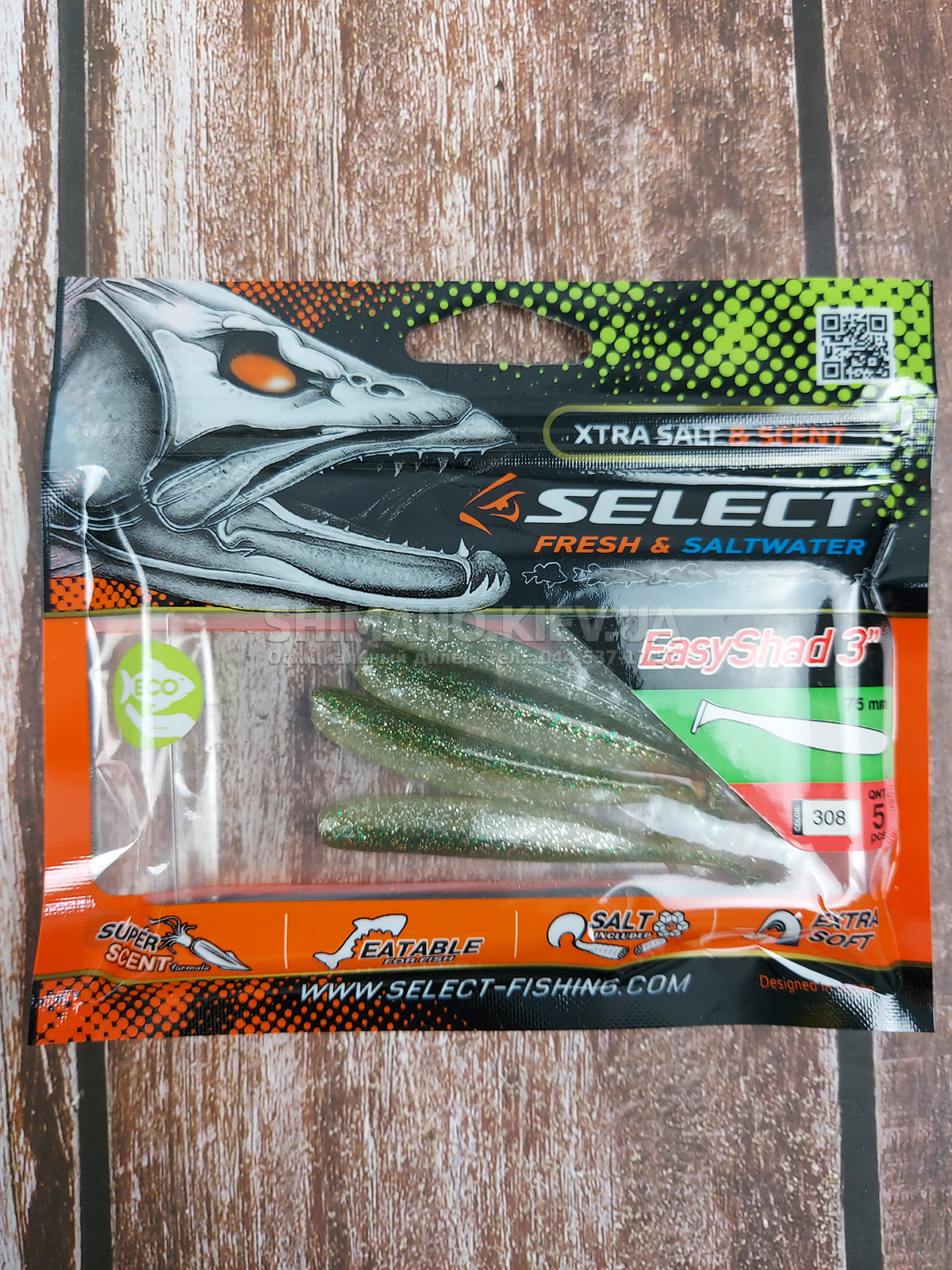 Популярна форма віброхвісту SELECT Easy Shad для лову судака, щуки та великого окуня. Принади володіють усім, щоб привернути увагу хижої риби - форма малька, еластичний їстівний матеріал і активний хвіст, що створює неймовірні коливання у воді.