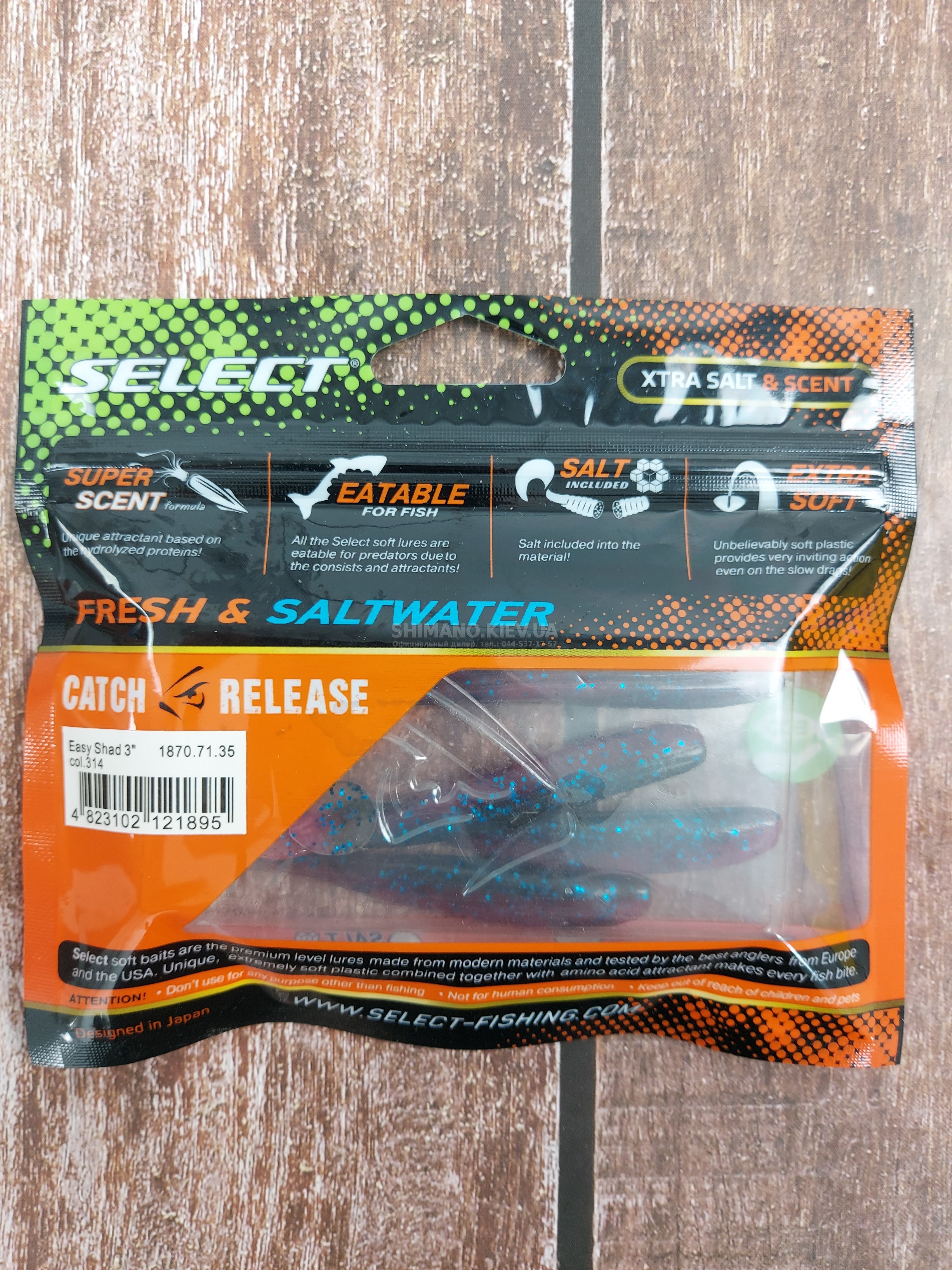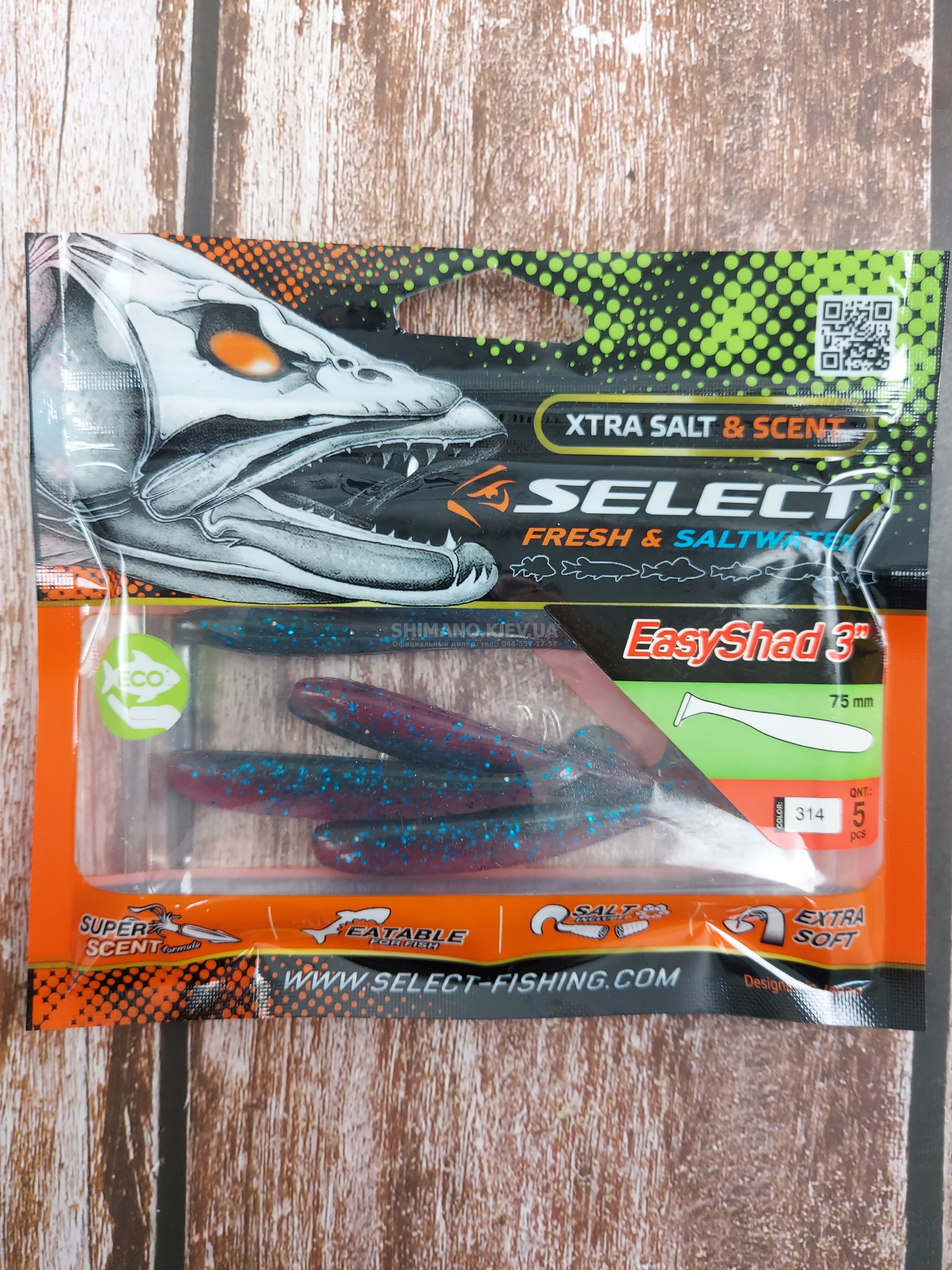 Популярна форма віброхвісту SELECT Easy Shad для лову судака, щуки та великого окуня. Принади володіють усім, щоб привернути увагу хижої риби - форма малька, еластичний їстівний матеріал і активний хвіст, що створює неймовірні коливання у воді.