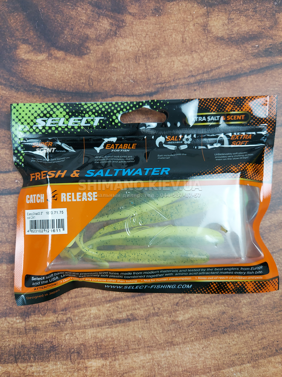 Популярна форма віброхвісту SELECT Easy Shad для лову судака, щуки та великого окуня. Принади володіють усім, щоб привернути увагу хижої риби - форма малька, еластичний їстівний матеріал і активний хвіст, що створює неймовірні коливання у воді.