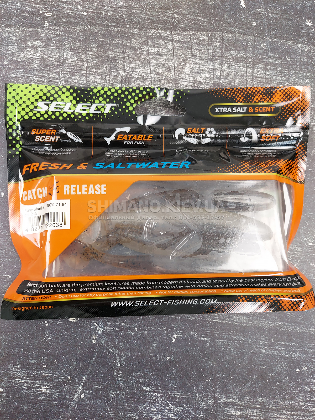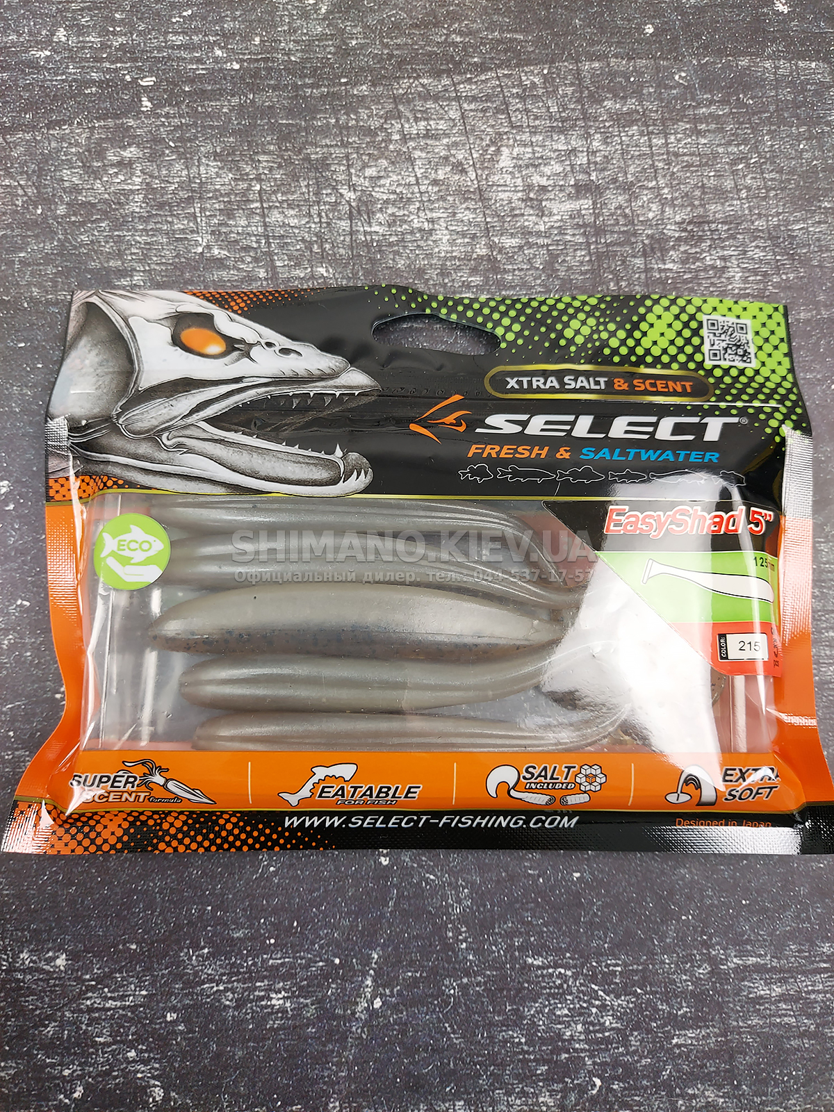 Популярна форма віброхвісту SELECT Easy Shad для лову судака, щуки та великого окуня. Принади володіють усім, щоб привернути увагу хижої риби - форма малька, еластичний їстівний матеріал і активний хвіст, що створює неймовірні коливання у воді.