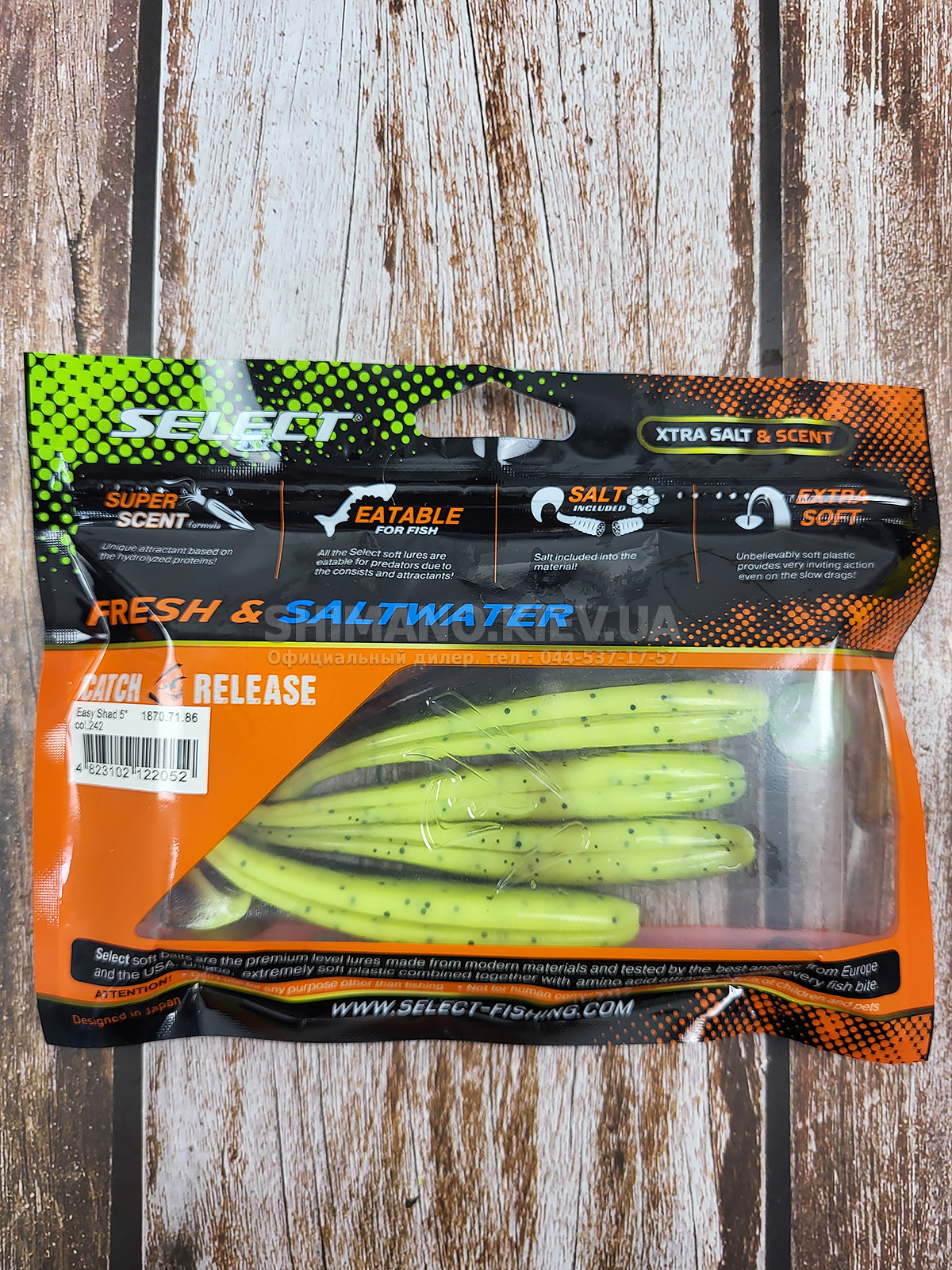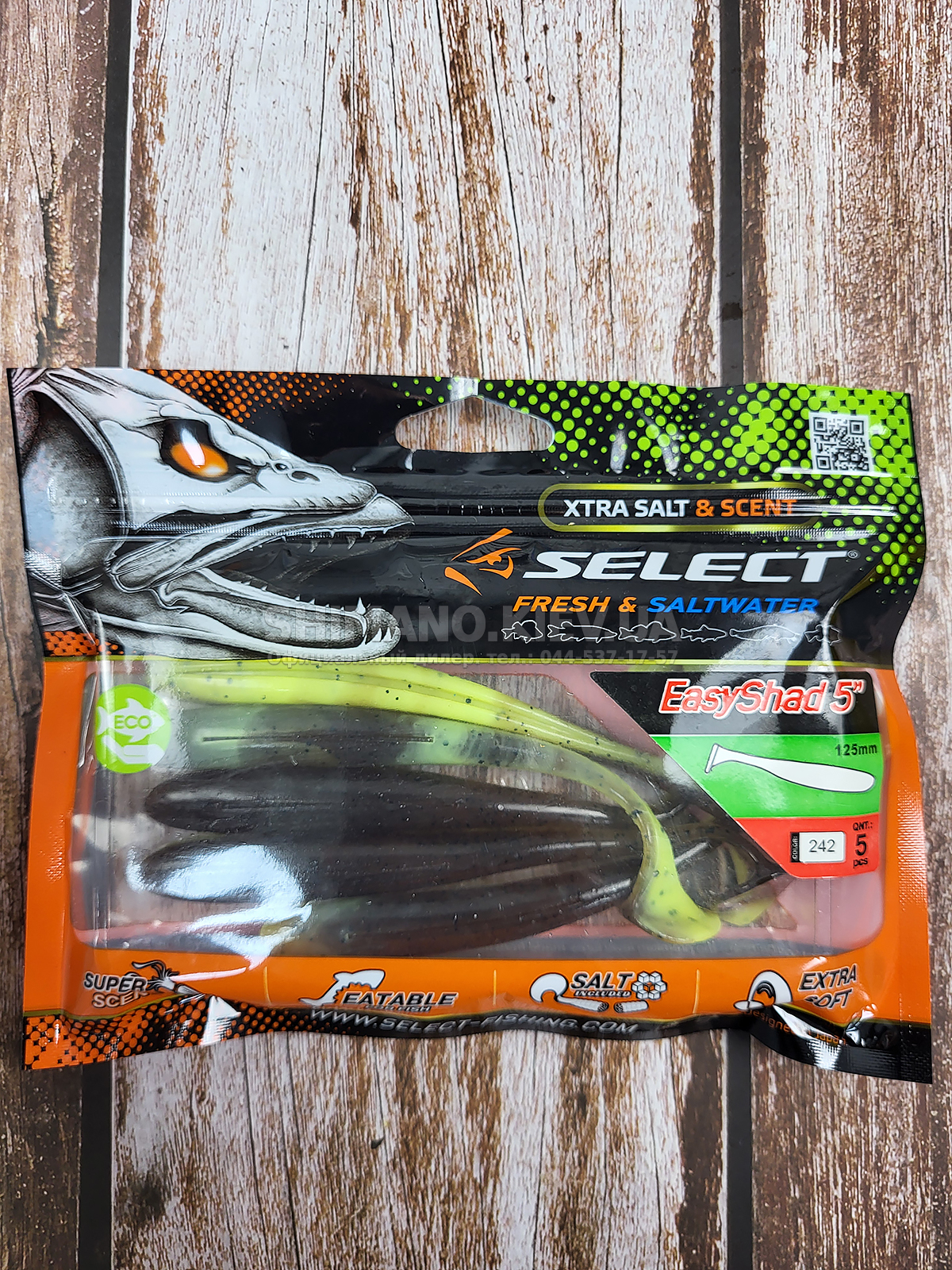 Популярна форма віброхвісту SELECT Easy Shad для лову судака, щуки та великого окуня. Принади володіють усім, щоб привернути увагу хижої риби - форма малька, еластичний їстівний матеріал і активний хвіст, що створює неймовірні коливання у воді.