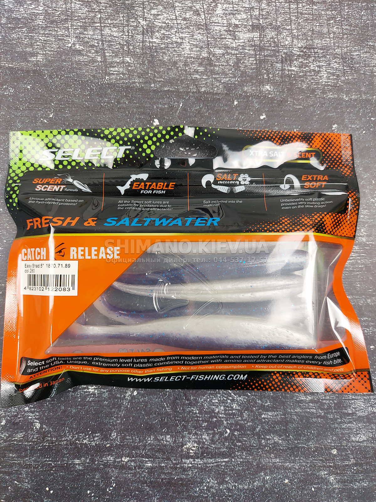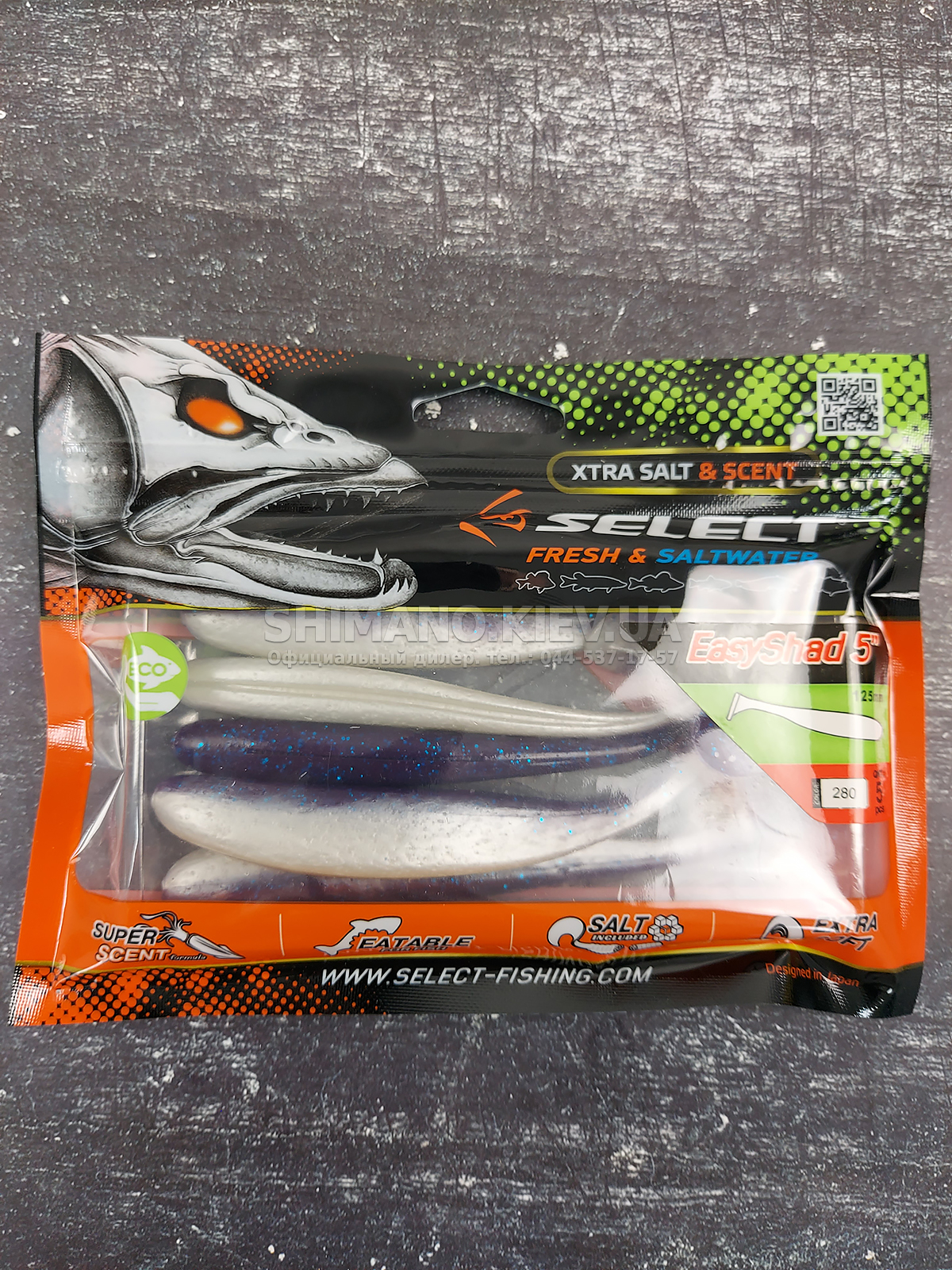 Популярна форма віброхвісту SELECT Easy Shad для лову судака, щуки та великого окуня. Принади володіють усім, щоб привернути увагу хижої риби - форма малька, еластичний їстівний матеріал і активний хвіст, що створює неймовірні коливання у воді.