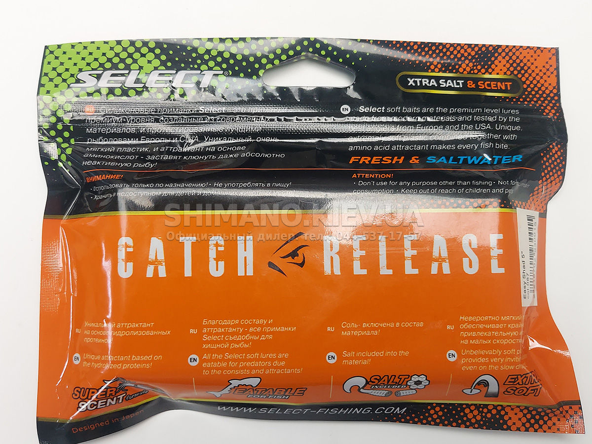 Популярна форма віброхвісту SELECT Easy Shad для лову судака, щуки та великого окуня. Принади володіють усім, щоб привернути увагу хижої риби - форма малька, еластичний їстівний матеріал і активний хвіст, що створює неймовірні коливання у воді.