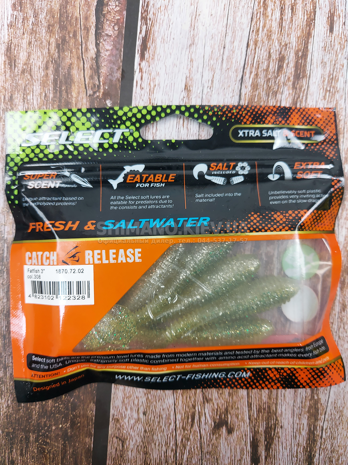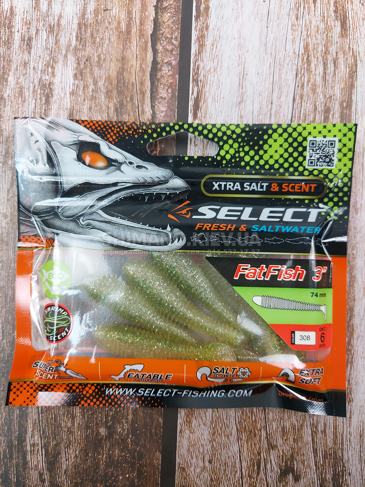 Силікон Select FatFish - віброхвіст з об'ємним тілом, покритим м'якими ребрами, як і у моделі FatFish. У приманки FatFish в нижній частині є спеціальне місце для додаткового підвантаження, якщо передбачається використовувати її в якості свімбейта. Під час проводки, за рахунок еластичності матеріалу, хвіст дуже розмашисто виляє по сторонам, вібрація від якого з великої відстані приваблює рибу. Ребра на тілі виконують кілька функцій. По-перше, вони створюють додаткову вібрацію, що приваблює рибу. По-друге, рифлене тіло на багато м'якше цільного, що позитивно позначається на грі приманки. По-третє, при клюванні риби, ребра легко зминаються і починають активно виділяти смакові добавки, що містяться в складі силікону, так що риба не помічає підступності і продовжує його заковтувати. Спокусливі виляння всім тілом і каламуть, що піднімається з дна джиг-головкою, активно привертають увагу риби, яка сміливо кидається на силікон.
